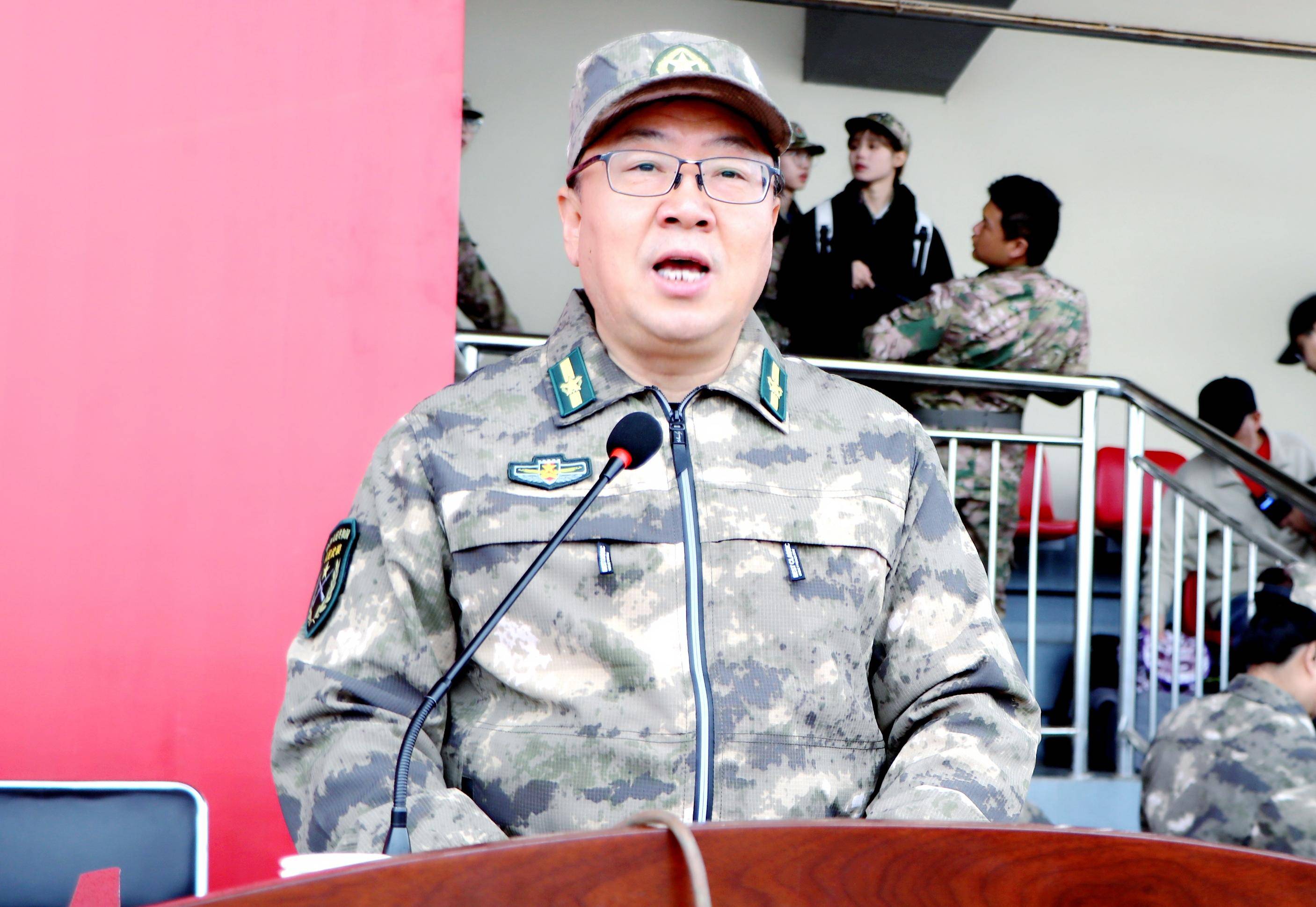 国防教育、征兵工作领导小组成员单位领导,军训团全体参训教师,承训部队教官,2024级全体参训本科学生参加活动。