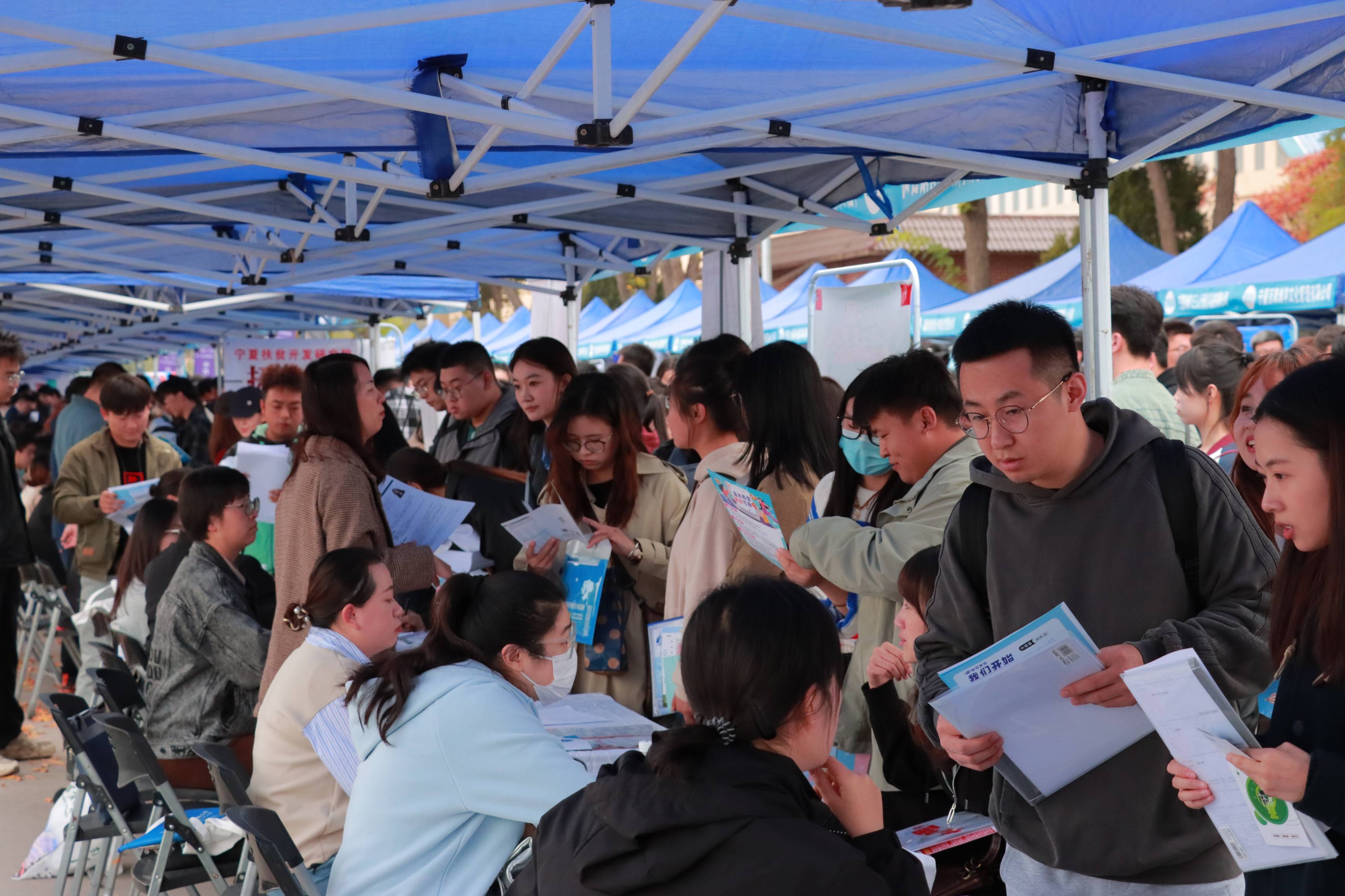 招聘会现场人头攒动,气氛火热。现场设立了服务前台、简历门诊、政策咨询、入伍宣传等多个展位,为前来应聘、咨询的应往届毕业生们提供了答疑解惑和温馨服务的窗口。来自宁夏、北京、浙江、山东等区内外194家用人单位在现场招聘,涵盖事业单位、国有企业、上市公司、外企、民营企业等,涉及制造业、IT行业、金融业、房地产、服务业等,岗位用人需求近7000人。