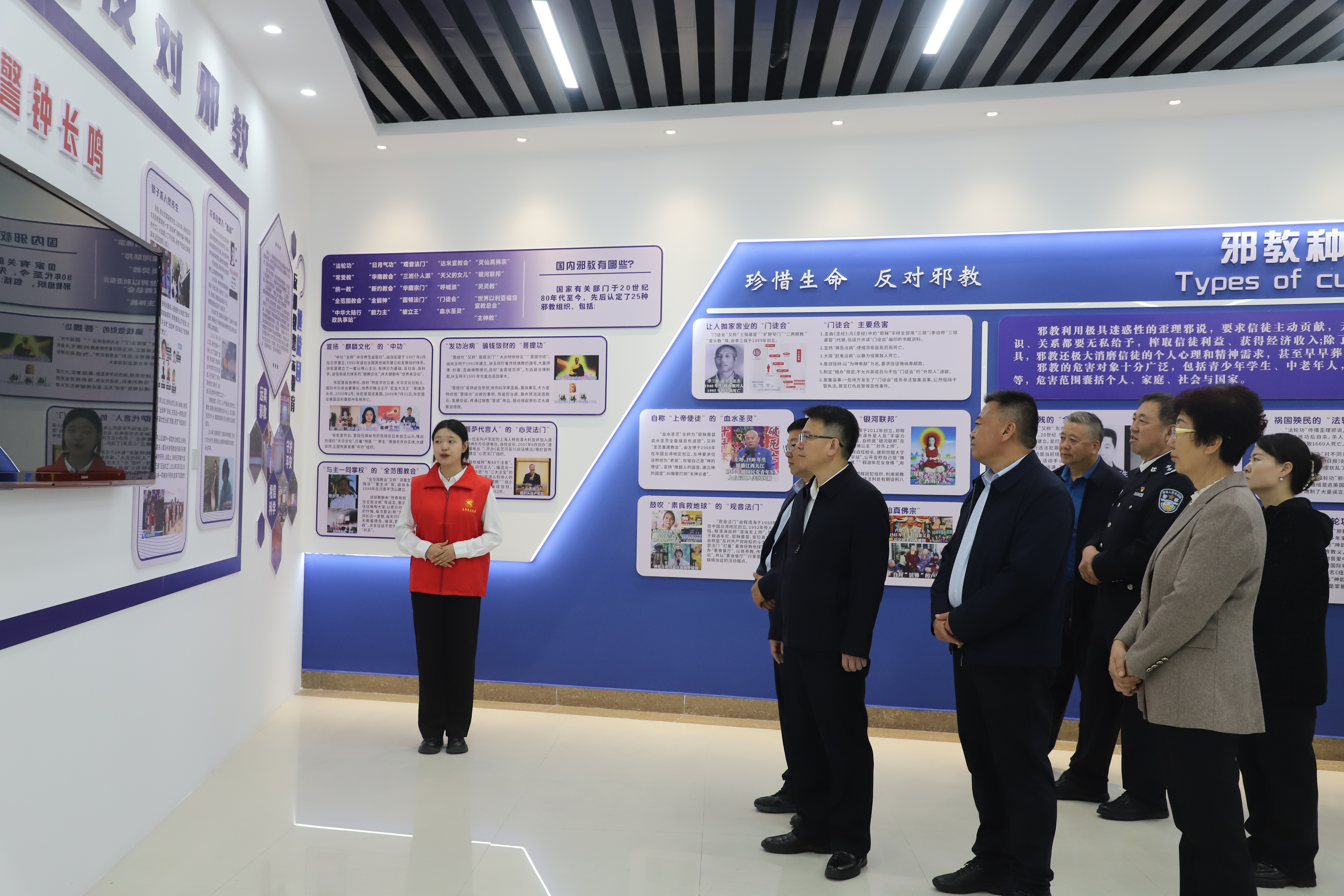 启动仪式后,与会嘉宾一同参观了反邪教警示教育基地,自治区公安厅四级高级警长李岩警官就如何识别和防范邪教为同学们作了精彩报告。
