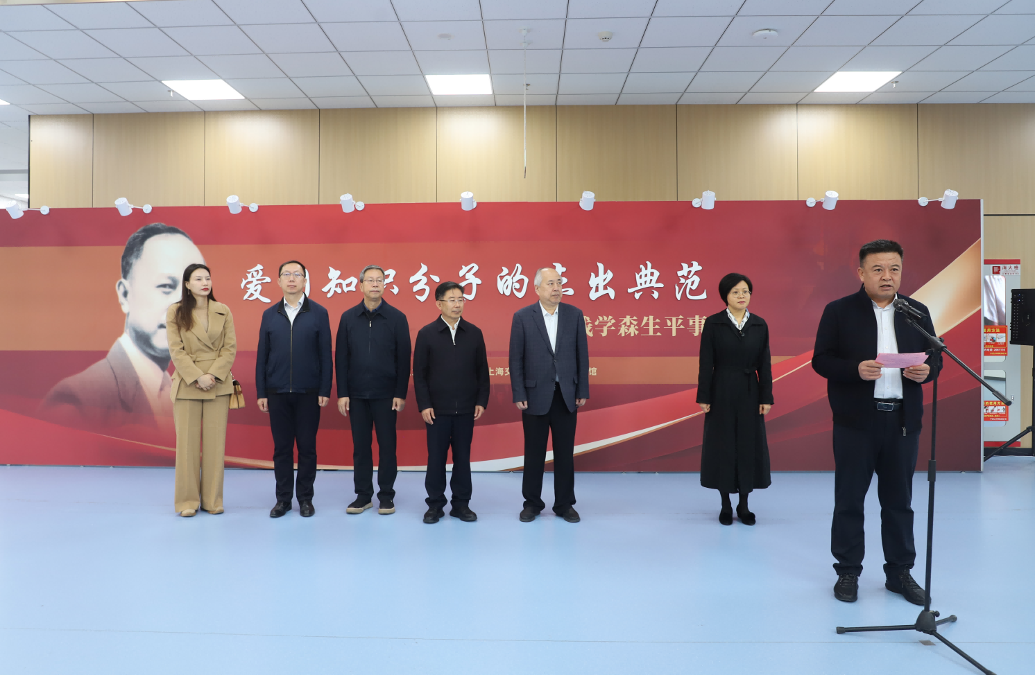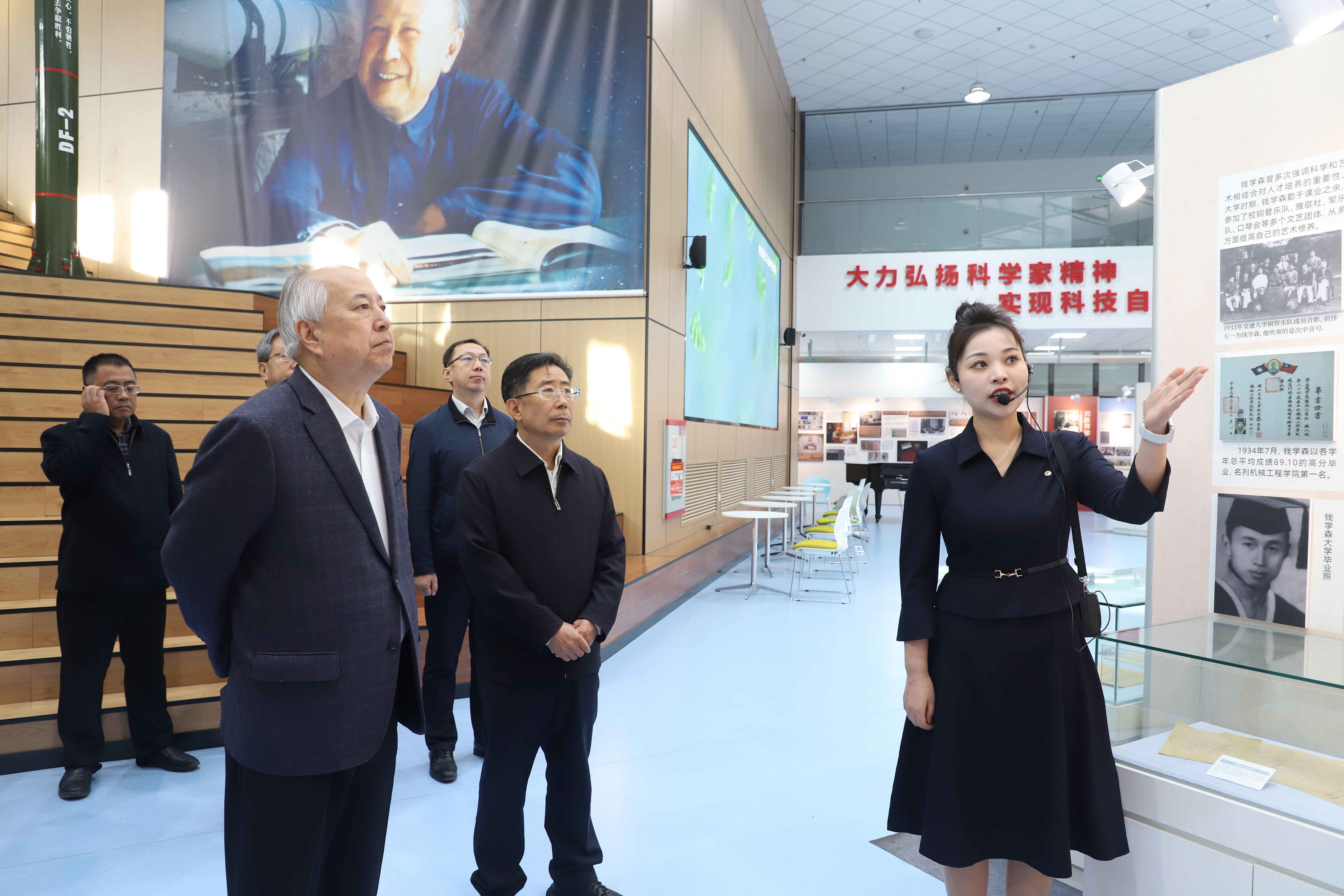讲座开始前,与会师生在上海交通大学钱学森图书馆讲解员引导下共同参观了“爱国知识分子的杰出典范——钱学森生平事迹展”。