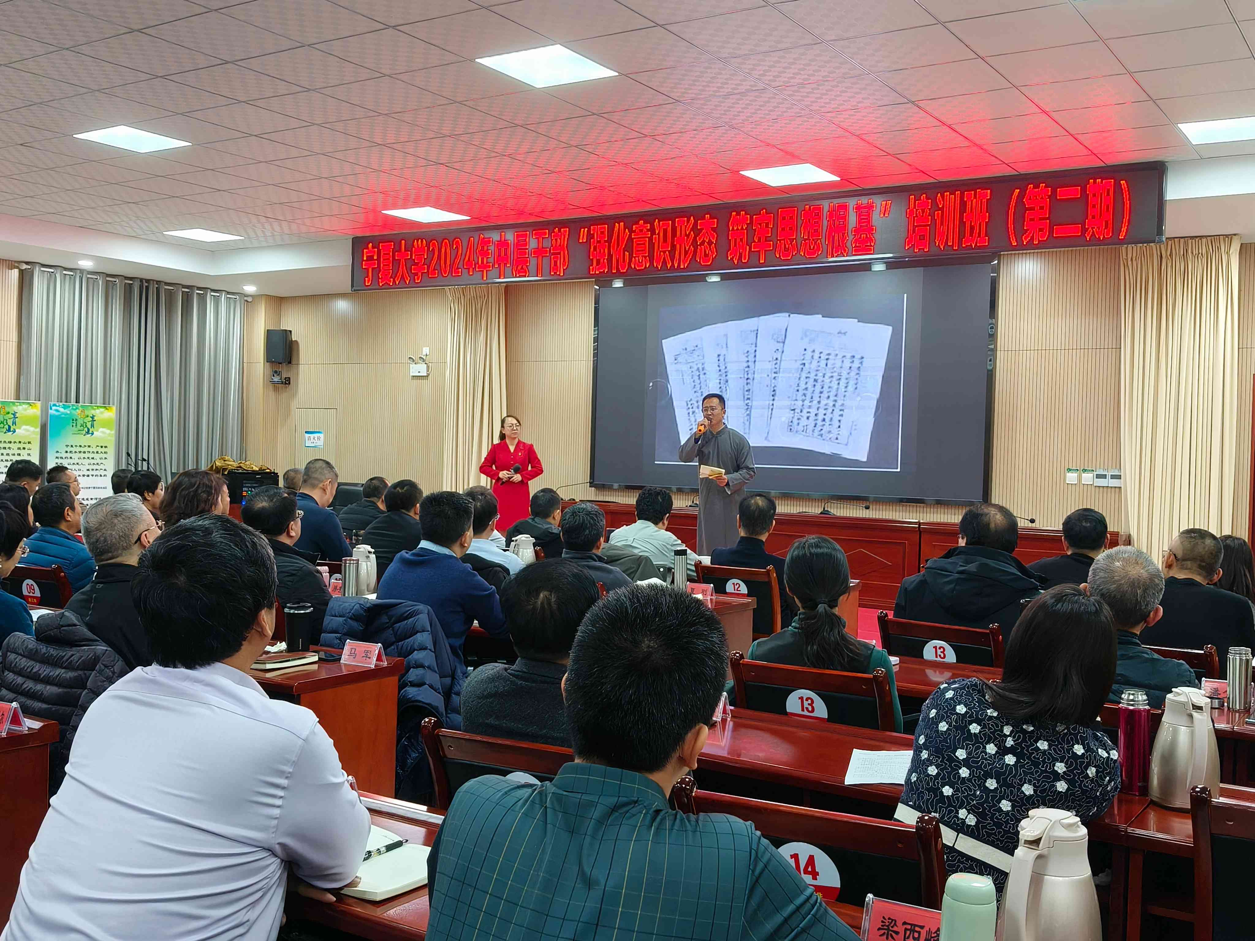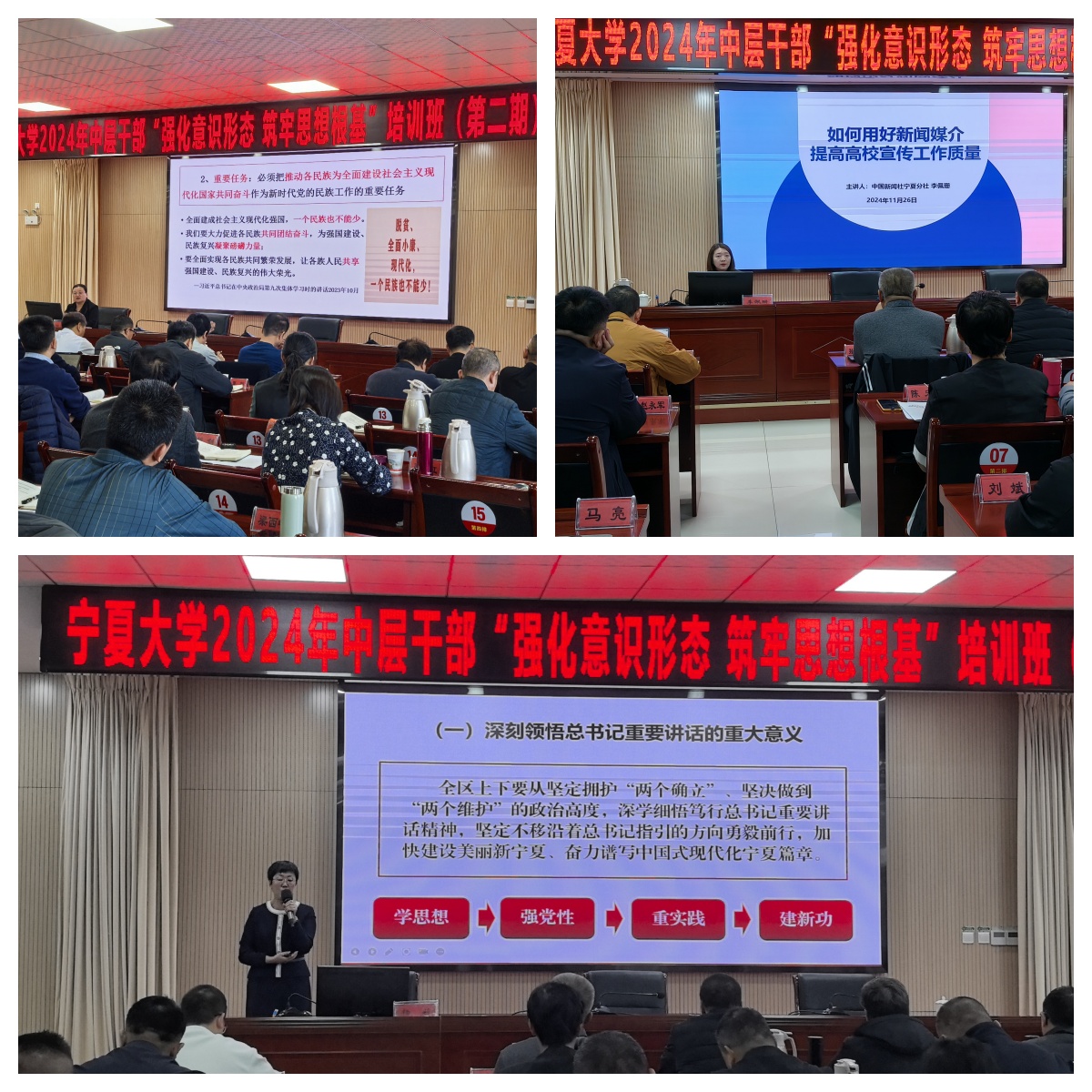 【澳门十大信誉网赌大全新闻中心讯 李瑾/文 李瑾、刘兆强/图】为持续深入学习党的二十届三中全会精神,进一步加强干部队伍建设,提升中层干部新闻宣传技能和意识形态工作本领,学校于11月24日至29日在石嘴山市委党校(石嘴山市行政学院)举办中层干部“强化意识形态 筑牢思想根基”培训班(第二期)。各中层党组织分管新闻宣传业务的班子成员,各单位新媒体业务指导教师代表等63人参加培训。校党委常委、组织部部长张永丽主持开班仪式。