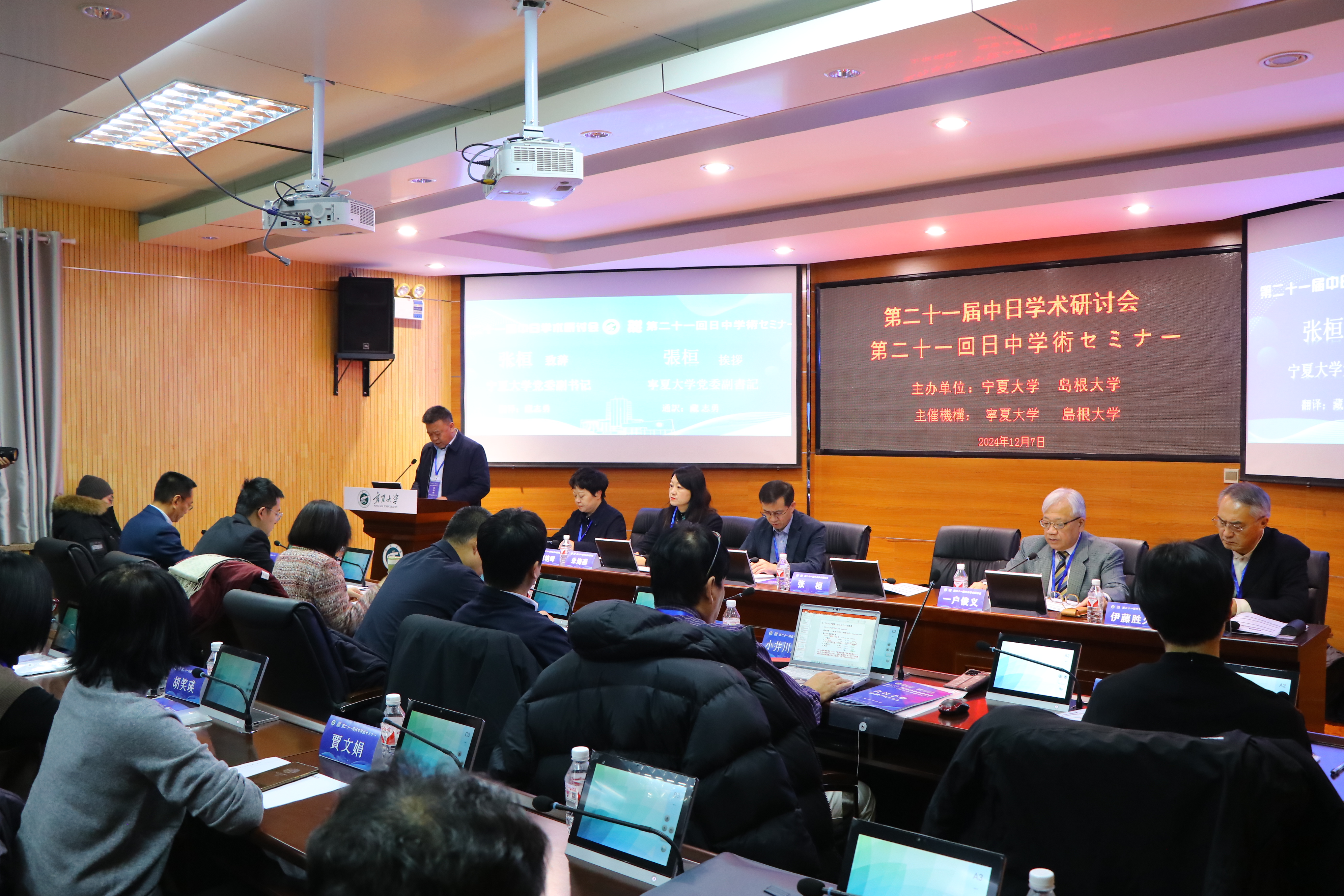 【澳门十大信誉网赌大全新闻中心讯 杨雯/文、图】12月7日,第二十一届中日学术研讨会在澳门十大信誉网赌大全文贺楼4楼报告厅召开,会议以“中日两国优质特色产业现代化发展问题研究”为主题。校党委副书记张桓,澳门十大信誉网赌大全•岛根大学国际联合研究所日方所长一户俊义出席开幕式。澳门十大信誉网赌大全外国语学院执行院长刘艳晖主持开幕式。