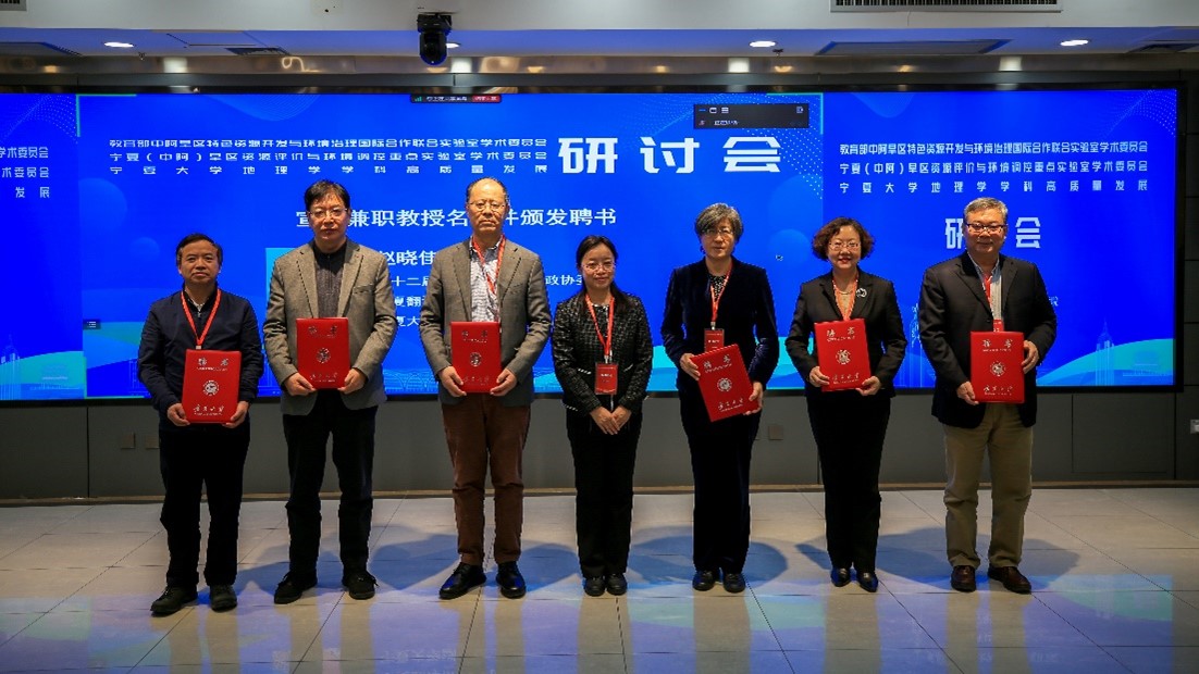 赵晓佳宣读教育部中阿旱区特色资源开发与环境治理国际合作联合实验室、宁夏(中阿)旱区资源评价与环境调控重点实验室新一届学术委员会名单和澳门十大信誉网赌大全兼职教授名单,并颁发了聘书。
