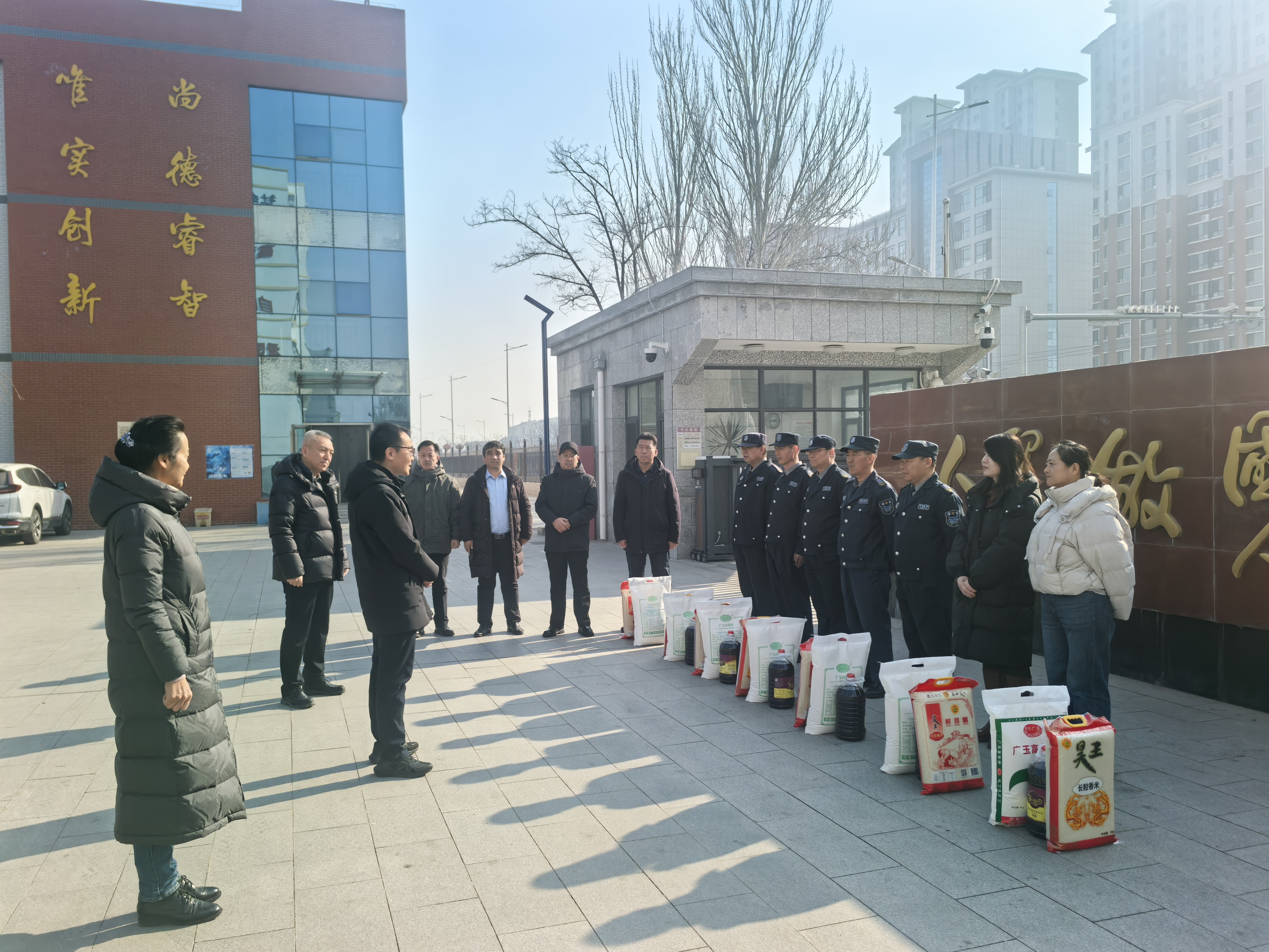 校领导一行分别前往贺兰山校区、怀远校区、文萃校区、新华学院、附属中学、金凤校区,看望慰问校园保卫、勤务、水电暖、学生公寓、保洁、食堂、物业等在岗职工,与大家亲切交谈,详细询问了他们工作生活、值班值守等情况,并送上新春祝福和学校精心准备的慰问品。