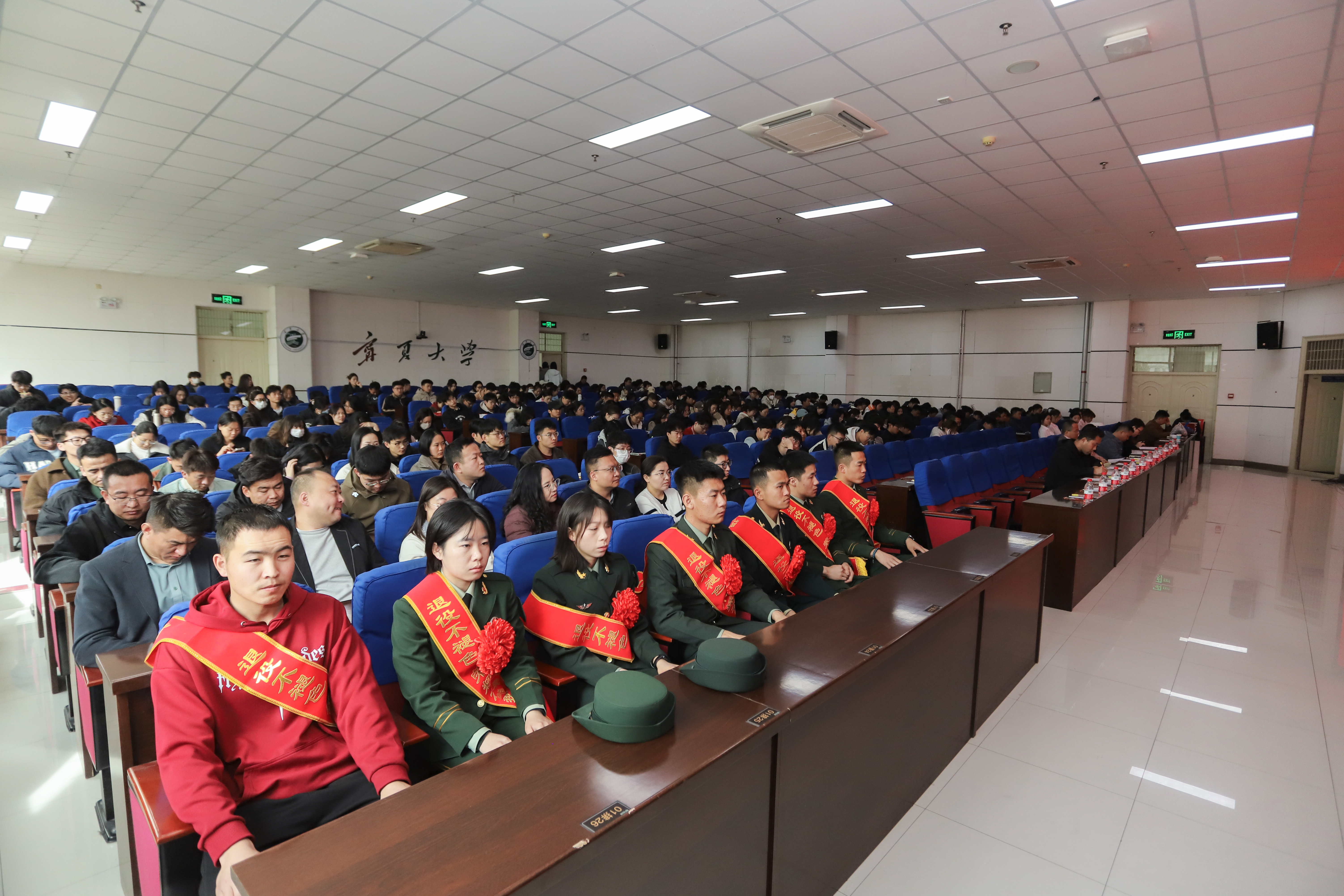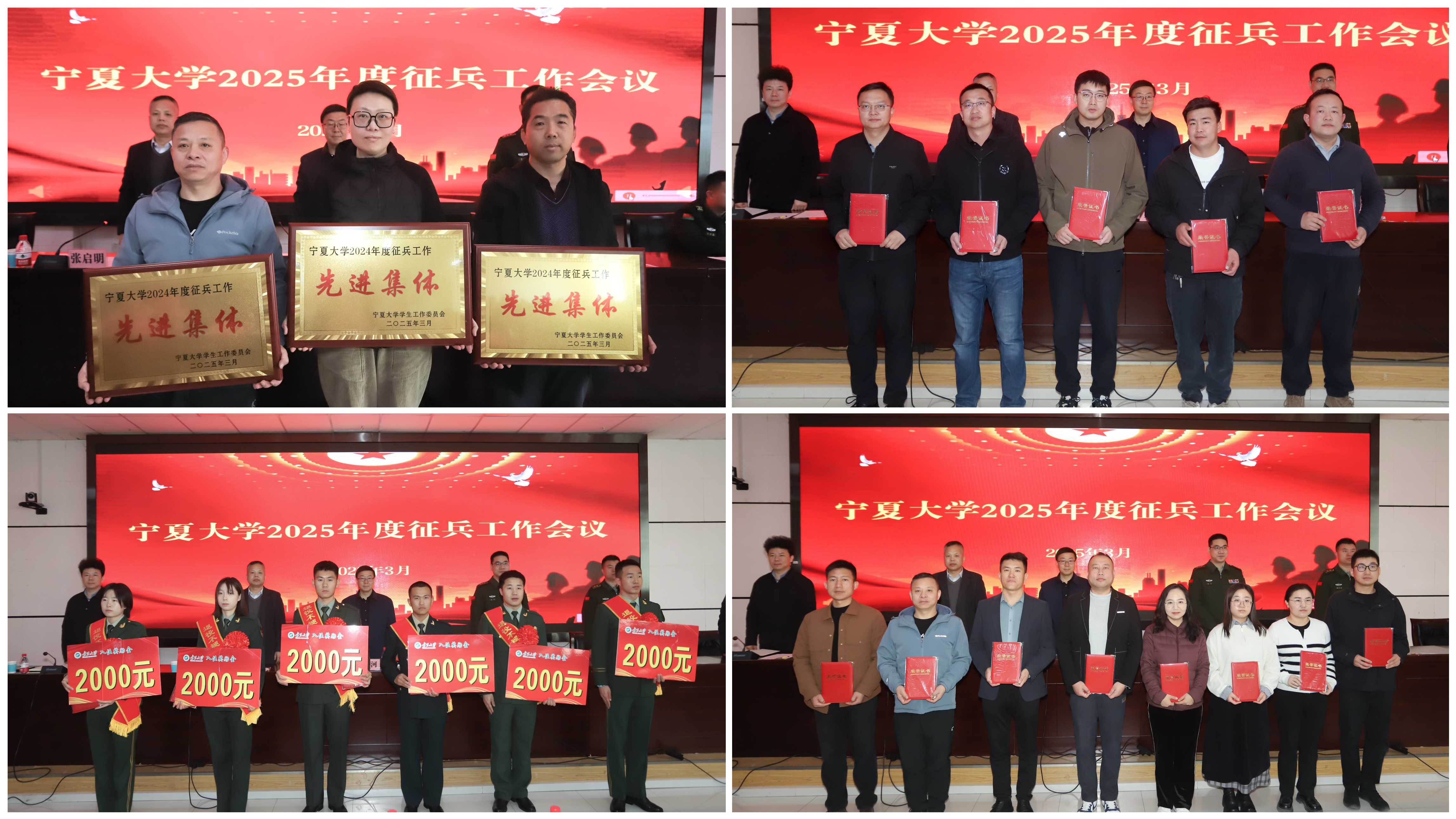 会议宣读了《自治区人民政府宁夏军区2025年征兵命令》,总结了学校2024年征兵工作,并对2025年征兵工作作了安排部署。会议还表彰了澳门十大信誉网赌大全2024年度征兵工作先进集体和先进个人,为2025年退役学生颁发入伍奖励金及征兵宣讲员聘书。