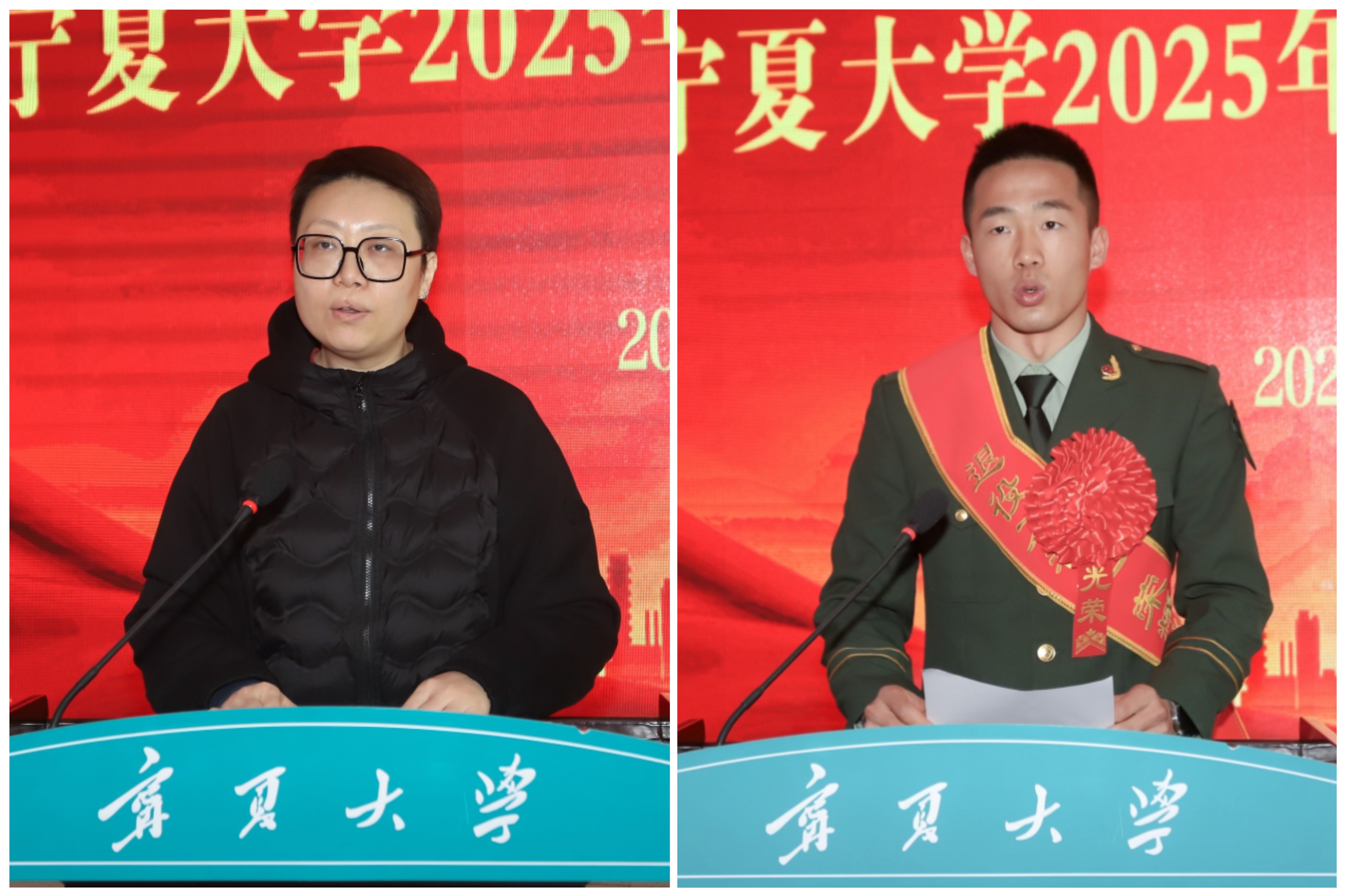 勤学书院党委副书记杨扬、电子与电气工程学院学生汤宇分别作为2024年征兵工作先进单位代表、2025年退役优秀大学生代表作了交流发言。
