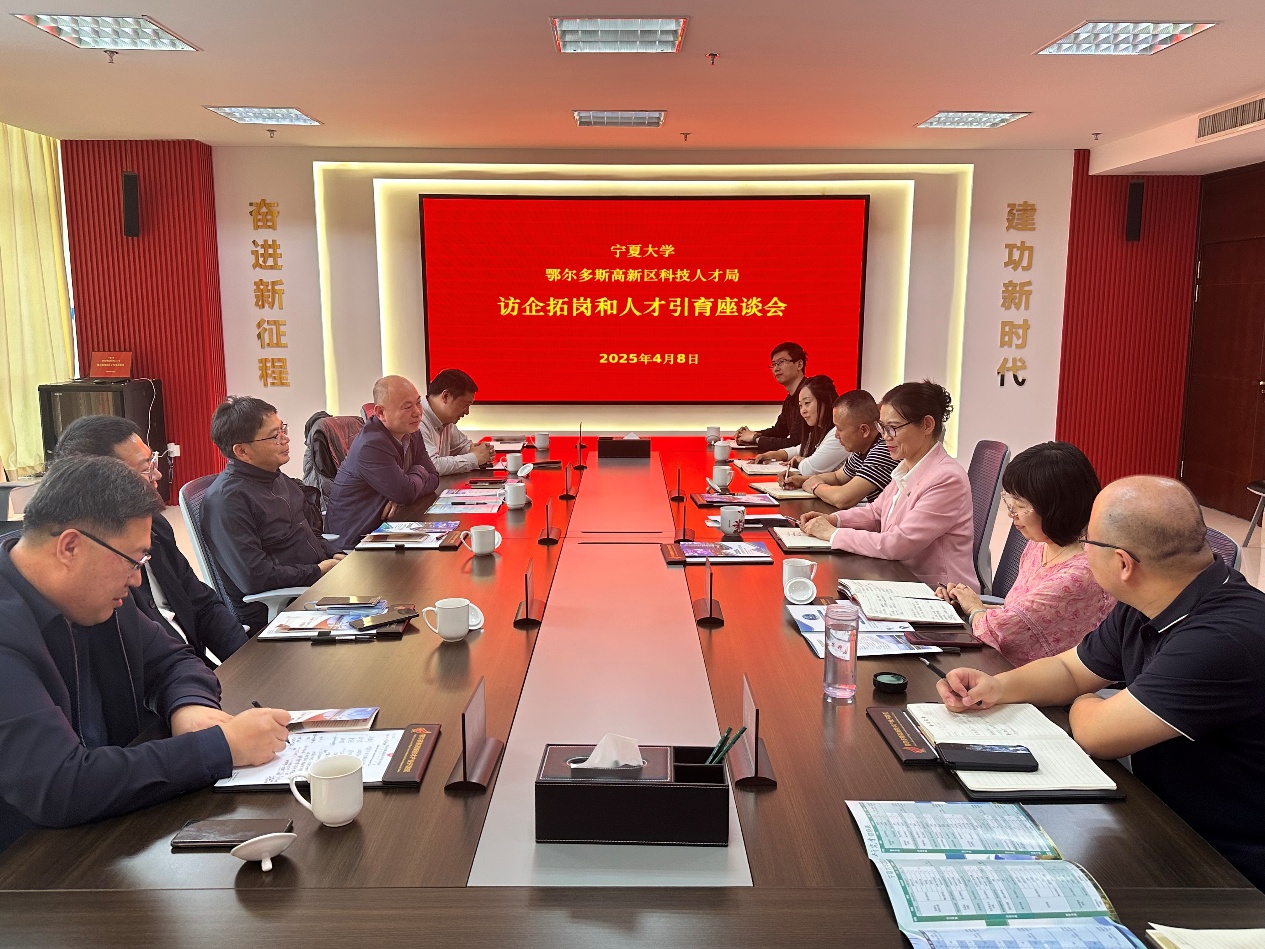 在澳门十大信誉网赌大全与鄂尔多斯高新区科技人才局共同召开的访企拓岗和人才引育座谈会上,高新区科技人才局局长尚秀珍介绍了当地的产业发展规划、人才政策以及对高校毕业生的引进需求,双方围绕加强校地合作、促进高校毕业生留鄂就业创业等话题进行了充分交流。