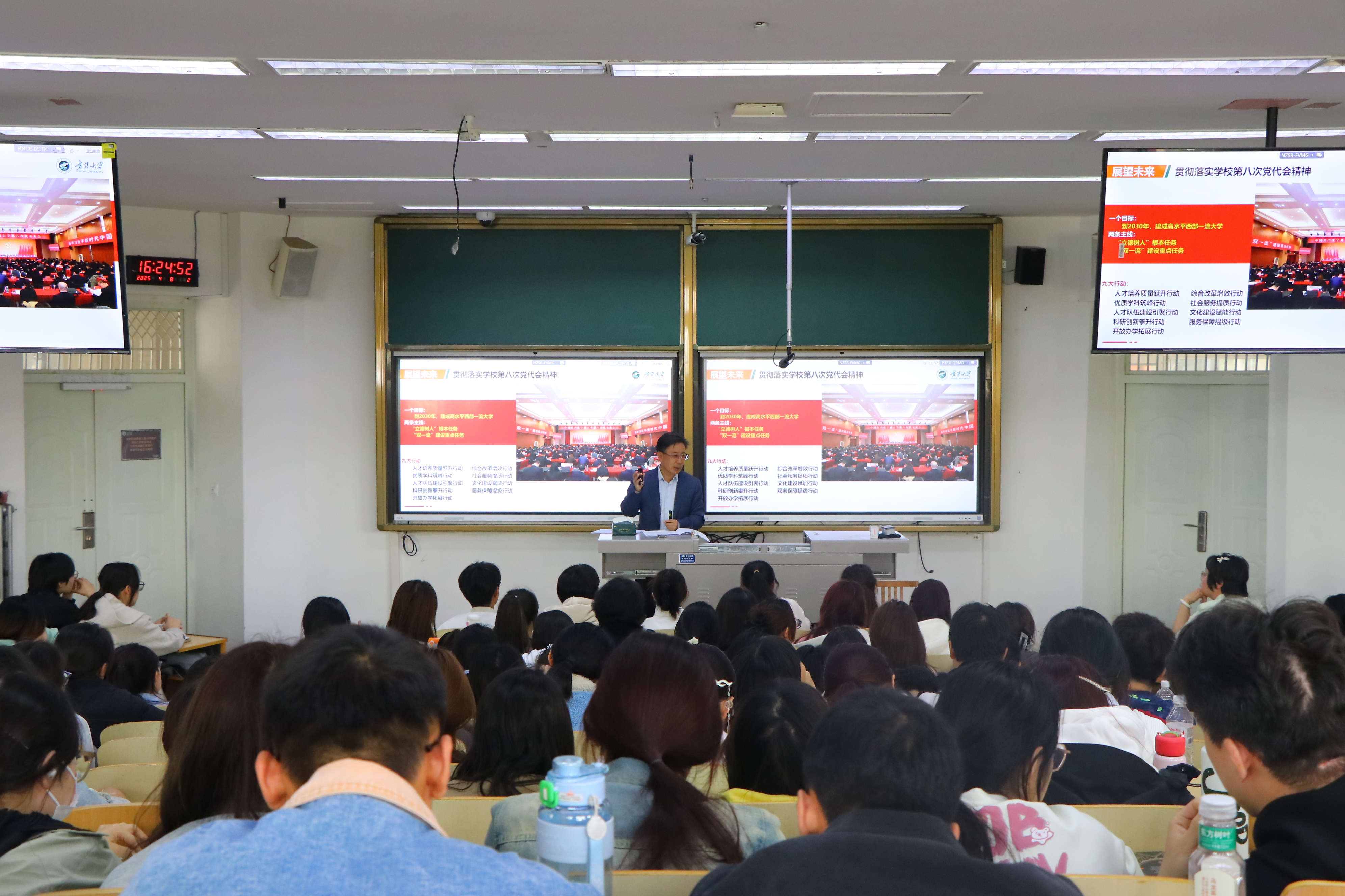 在文萃一教131教室,李星带着同学们回顾了澳门十大信誉网赌大全六十七载办学历程,从“以坚忍不拔的勇气在曲折中谋发展”“以敢为人先的魄力在改革中求突破”“以赶超一流的姿态在机遇中赢未来”三个方面,为同学们深情讲述了澳门十大信誉网赌大全从“荒漠戈壁上奋起”到“迈向高质量发展”的蜕变,用以小见大、深入浅出的方式阐释了为什么要建设教育强国、建设什么样的教育强国、怎样建设教育强国的问题。他希望同学们能够珍惜学习机会,不负青春韶华,练就过硬本领,投身强国建设,在青春的火热实践中努力成长为德智体美劳全面发展的社会主义合格建设者和可靠接班人。