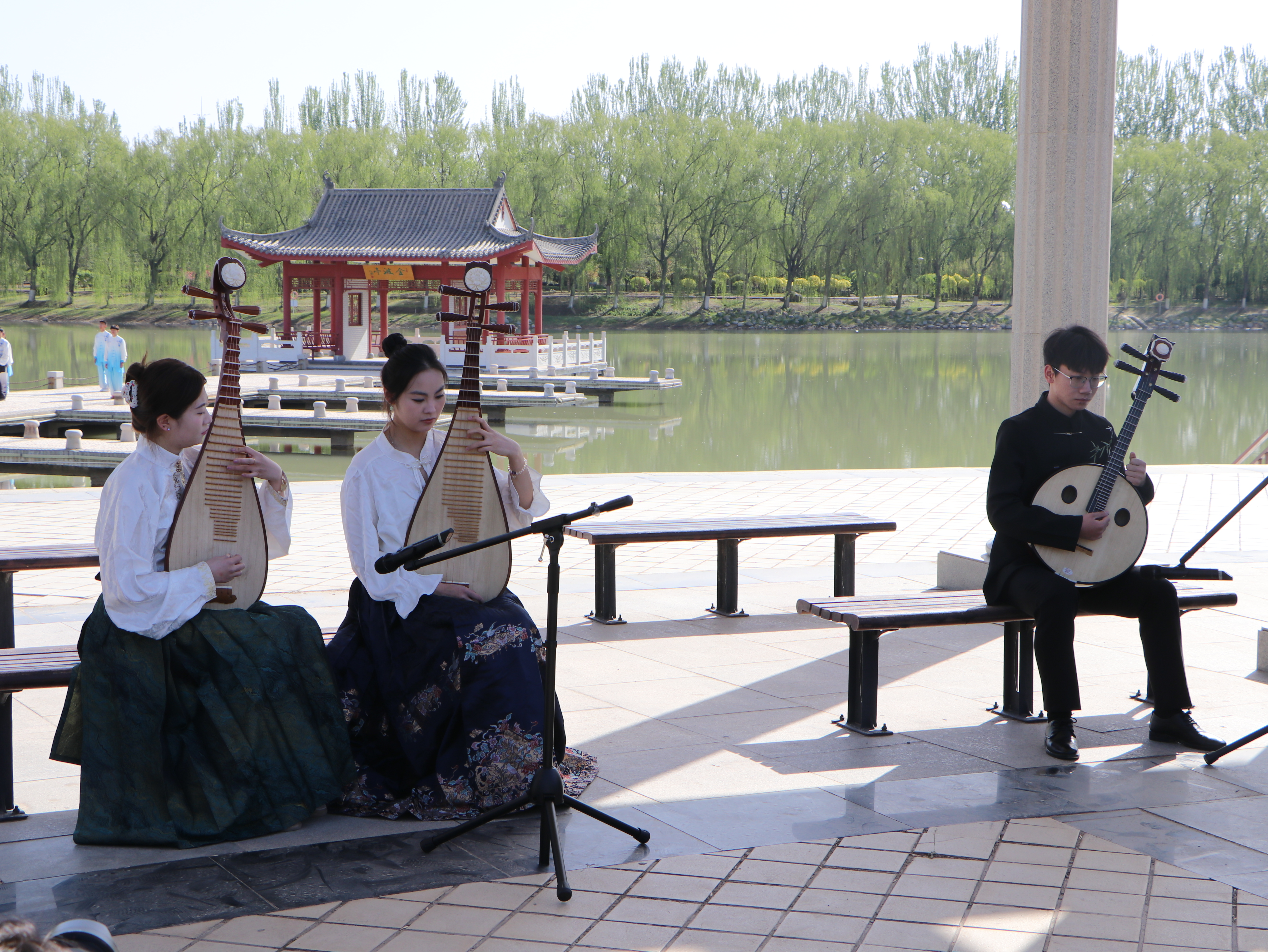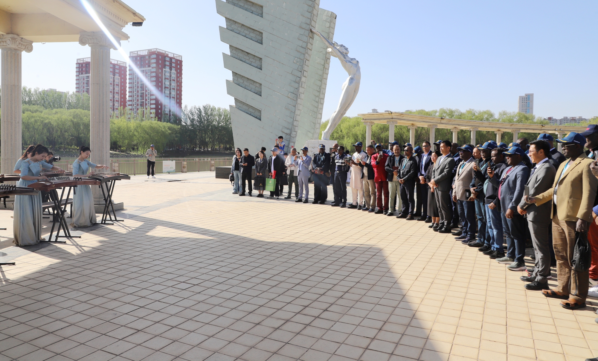 座谈会前,研究班学员在张桓、赵晓佳的陪同下,在怀远校区凌云广场观看了学生民族乐器、民族舞蹈、中国武术、太极拳等表演,沉浸式体验中国传统文化,并与同学们进行互动交流。