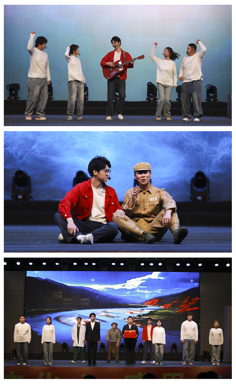 《我要找到你》以抗美援朝真实历史事件为背景,以“寻找烈士遗骸”为主线,通过当代大学生在寻找抗美援朝烈士遗骸过程中所发生的故事,展现出青年学生对党和国家的赤诚热爱、对革命先烈的深切追思、对崇高价值理念的不懈追求。音乐剧将战争场景与现代情境有机结合,通过多时空交汇的形式,将历史与今天连接在一起,既有打动心灵、催人泪下的情感铺陈,也有战士们舍生取义、为国捐躯的震撼场面。音乐剧用舞蹈、歌曲、表演等形式缅怀革命历史,讴歌伟大时代,既是音乐学院发挥专业优势的一次生动实践,也是践行美育教育和思政课程的具体体现。