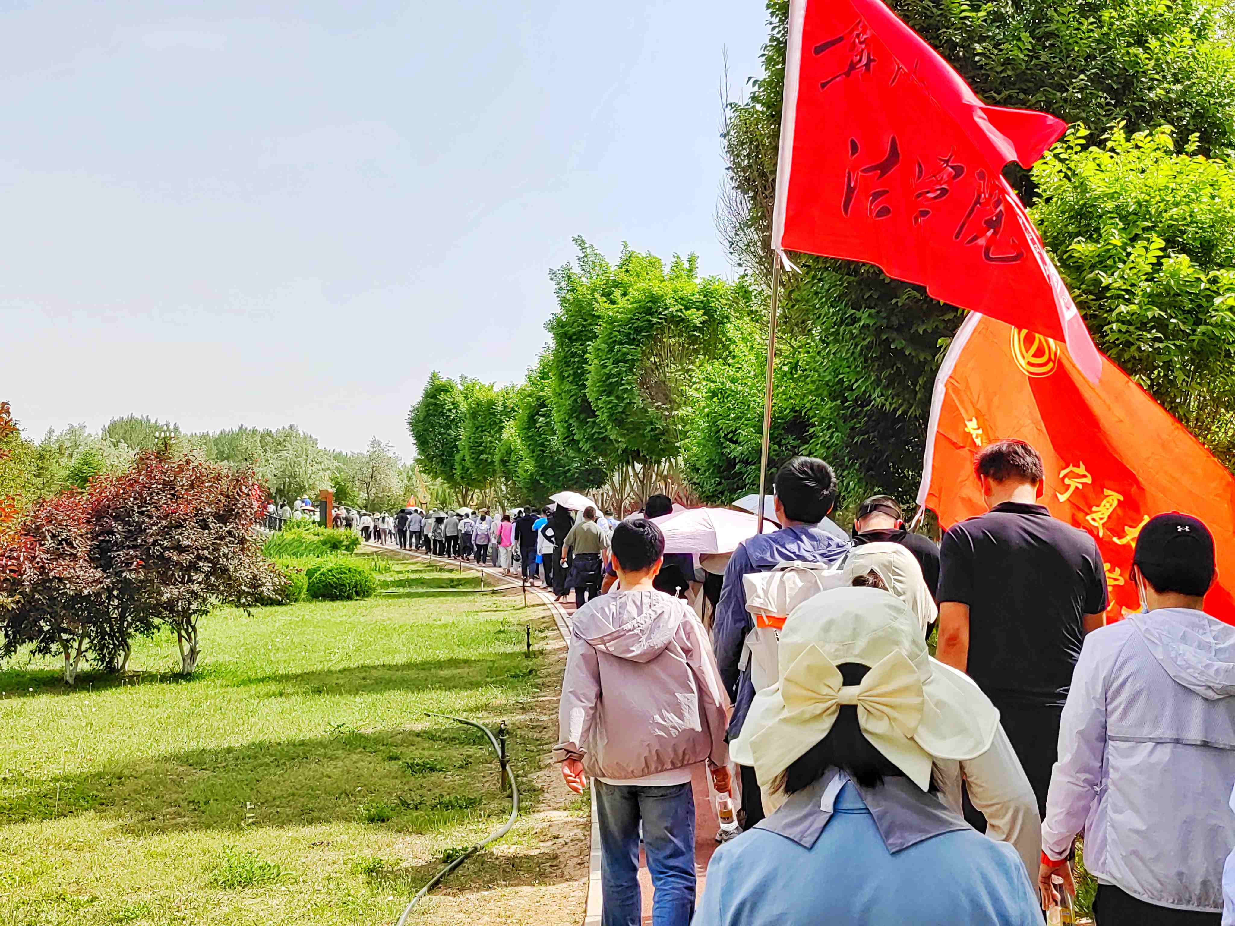 此次健步行路线围绕银川花博园核心景区,由校工会进行了特色区域设计,沿途绿树成荫、景色宜人。教职工们迈着矫健的步伐,沿着精心规划的路线有序出发。在行走过程中,他们一边欣赏花博园的优美景色,呼吸清新空气,一边交流工作、生活中的点滴趣事,不时发出开心的笑声。健步行途中设置了六个趣味打卡点、一个补给点和一个纪念品发放点,采用打卡集票领取纪念品的方式鼓励教职工们积极参与。