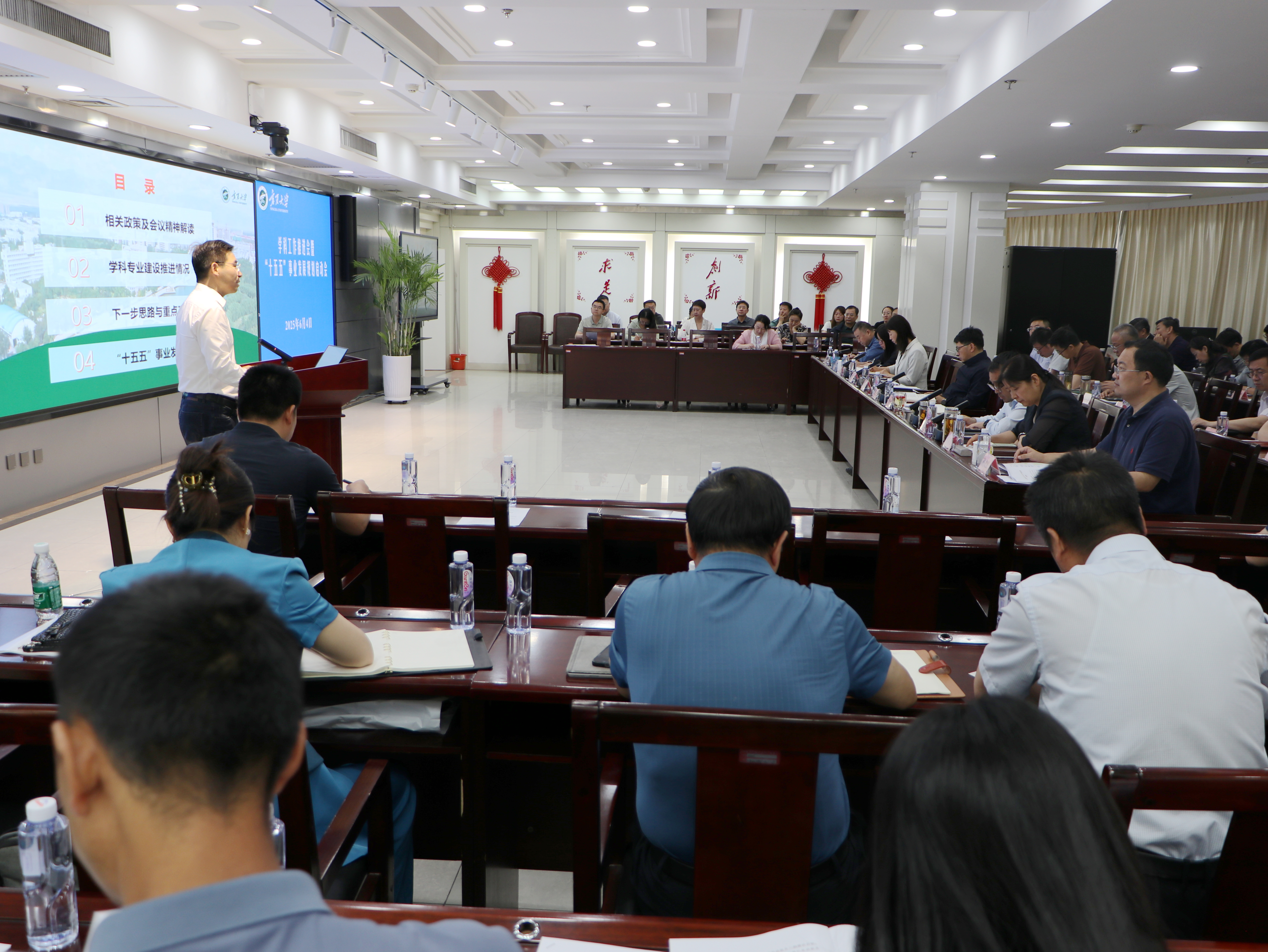 学校办公室、党委组织部、党委宣传部、党委统战部、团委、对外合作交流处、人力资源部、本科生院、科学技术处、人文社会科学处、党委学生工作部、研究生院、计划财务处、审计处、创新创业学院、教学运行保障部负责人,各学院书记、院长,45个学科建设负责人参加会议。