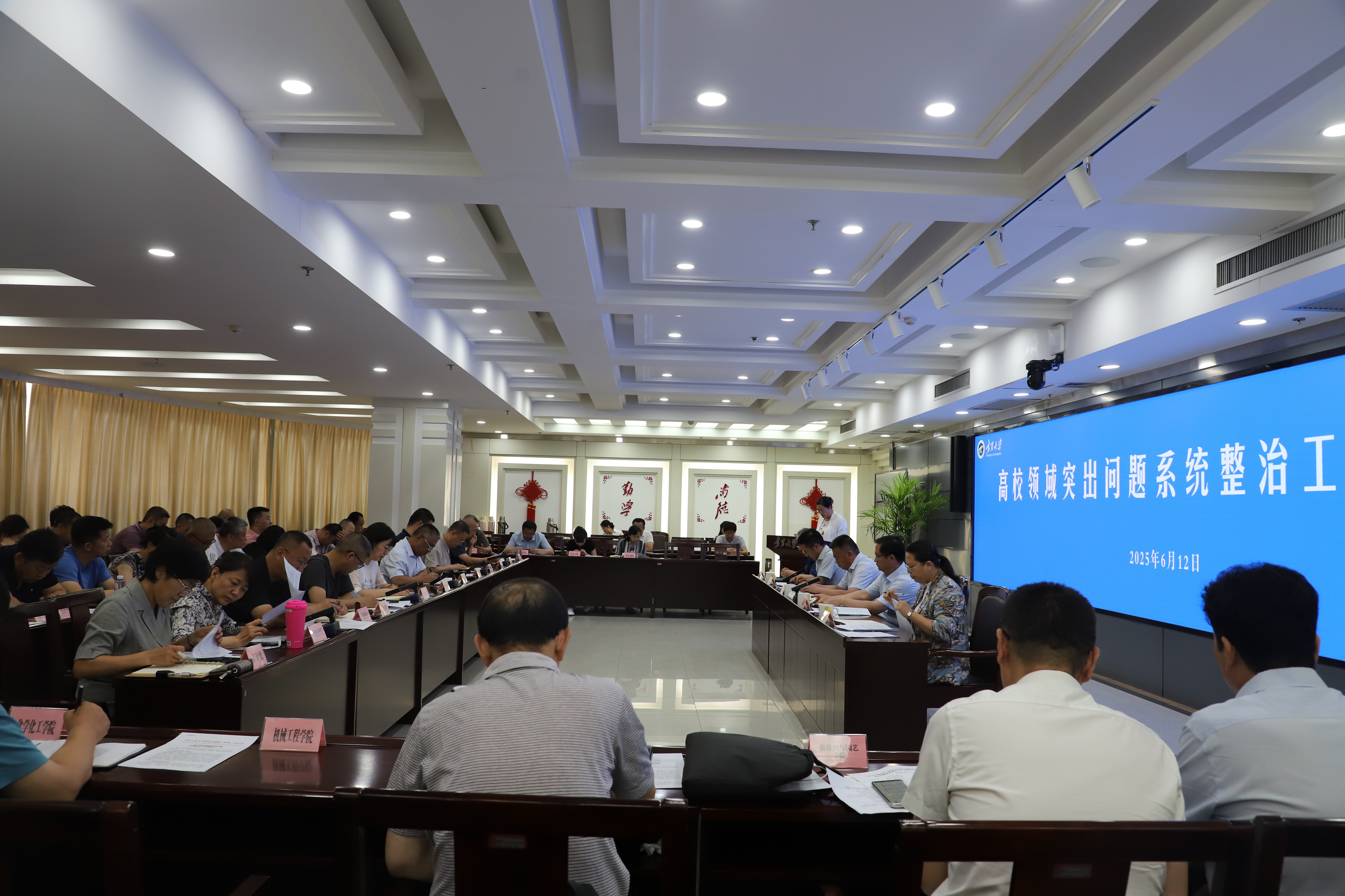 学校突出问题系统整治工作领导小组成员单位、各工作组组成单位主要负责人,各学院党组织主要负责人参加会议。