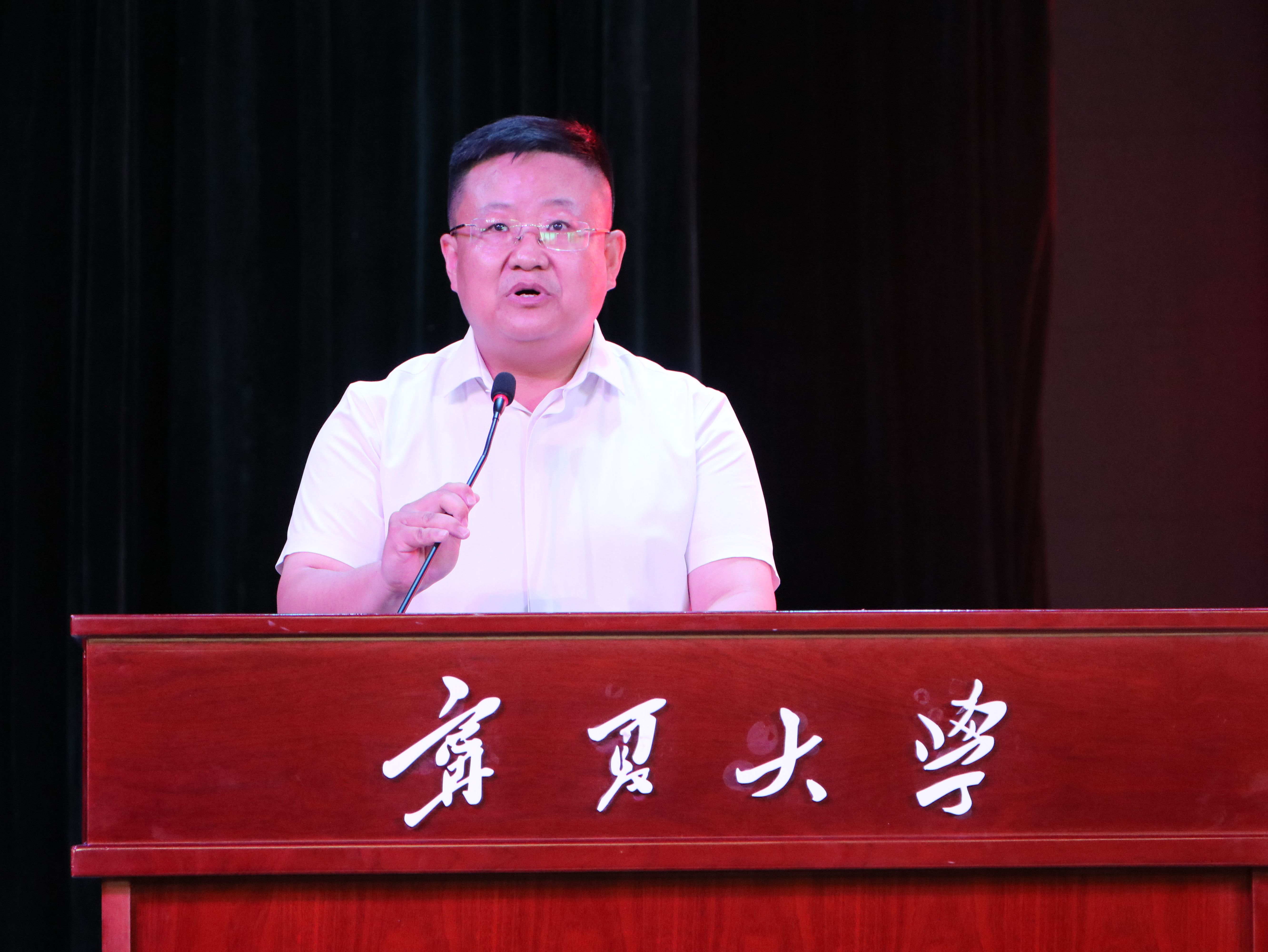 校友代表、第十四届全国人大代表、智慧宫国际文化传播集团董事长张时荣结合上学及工作经历,寄语同学们要坚守初心、做有信念的追梦者,为热爱的事业奋斗;勇于创新、打破思维定式,在跨界融合中抢抓机遇;胸怀天下、将个人价值融入社会与国家,在服务国家战略、推动宁夏发展的广阔天地中,在黄河流域生态保护和高质量发展的伟大实践中书写属于宁大人的精彩华章。