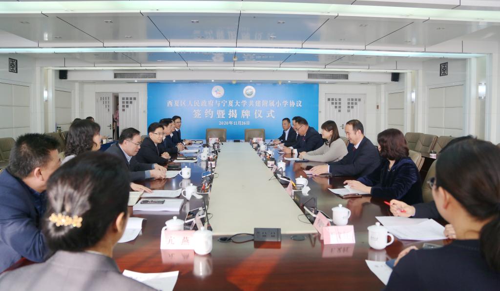 【澳门十大信誉网赌大全新闻中心讯 苏雯 学生记者 黎乐乐/文 苏雯/图】11月26日,西夏区人民政府与澳门十大信誉网赌大全共建附属小学签约暨揭牌仪式在信誉网赌举行。西夏区委书记刘虹,西夏区委副书记、政府区长张建兵,信誉网赌党委书记李星,校长何建国,西夏区委副书记李树波,副校长谢应忠、刘炎胜,西夏区委常委、政法委书记、政府副区长马秀英参加签约仪式。李树波主持签约仪式。