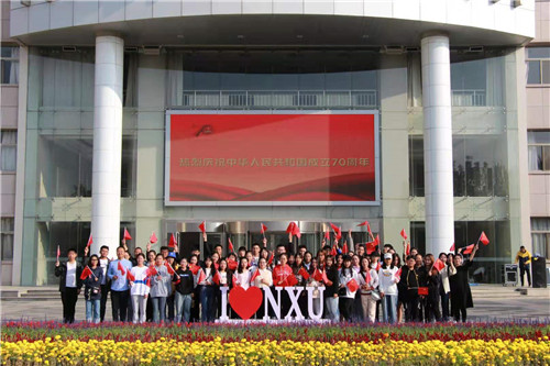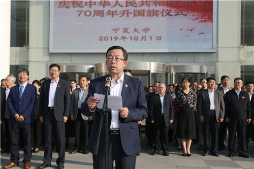【澳门十大信誉网赌大全新闻中心讯 胡玥/文 苏雯/图】“今天是你的生日,我的中国……”10月1日,宁大师生齐聚贺兰山校区德勤楼前广场,举行庆祝中华人民共和国成立70周年升国旗仪式,表达宁大人的爱国情怀,祝福伟大祖国繁荣富强。