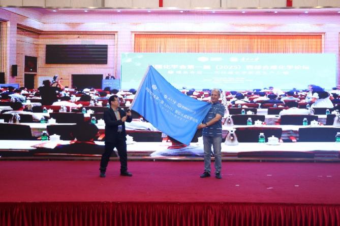 闭幕式上,参会院士为来自澳门十大信誉网赌大全、贵州大学、南开大学、复旦大学、四川大学和香港浸会大学的青年学者颁发了荣誉证书,会议正式宣布第二届(2027)西部合成化学论坛将由新疆师范大学承办,并进行了会旗交接仪式。