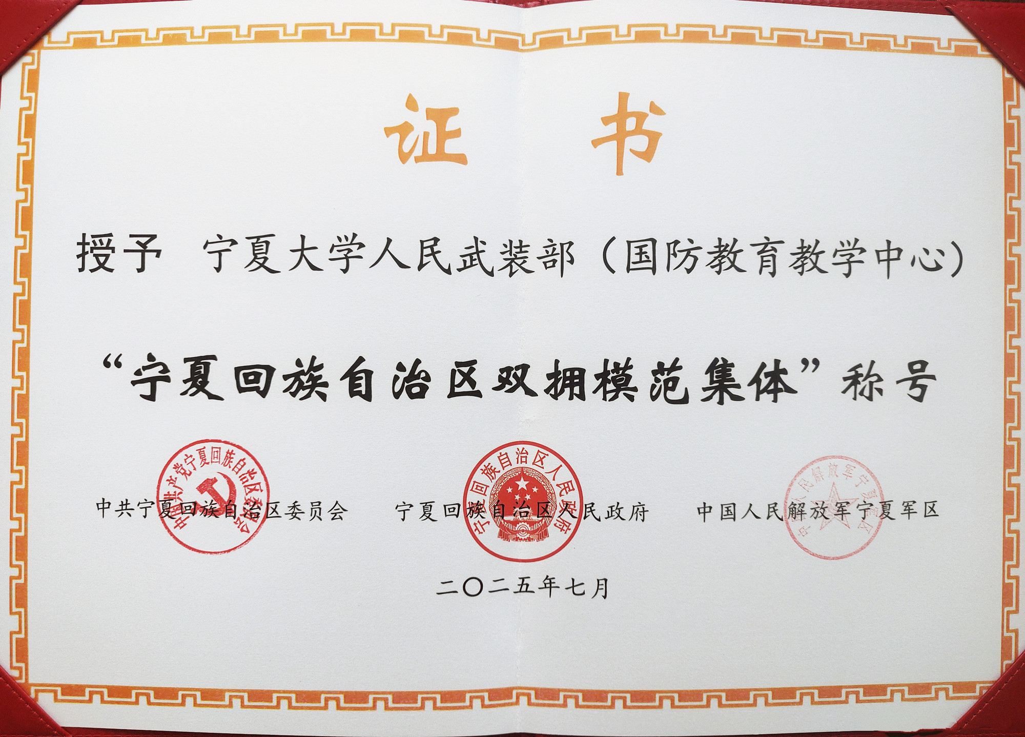 【澳门十大信誉网赌大全新闻中心讯 人民武装部(国防教育教学中心)】7月28日,自治区双拥模范表彰大会在银川召开。自治区党委书记、人大常委会主任李邑飞出席会议并讲话。会上宣读了宁夏被命名的全国双拥模范城(县)名单和关于表彰全区双拥模范集体和个人的决定。信誉网赌人民武装部(国防教育教学中心)被授予“自治区双拥模范集体”荣誉称号。
