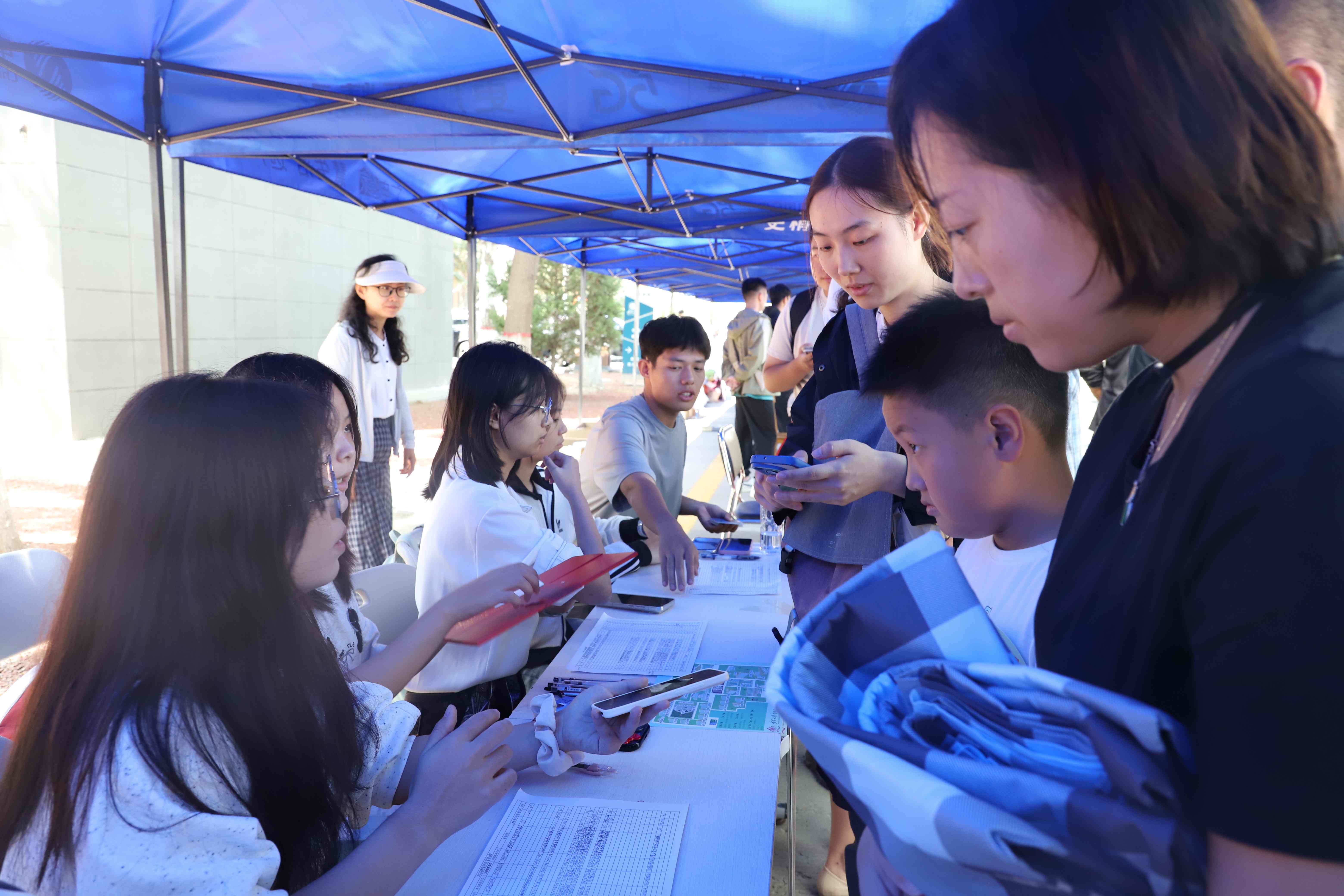 各校区内,迎新氛围热烈而温馨,横幅迎风招展,指引牌清晰明了,在志愿者的热情引导下,新生有序完成入学报到手续。