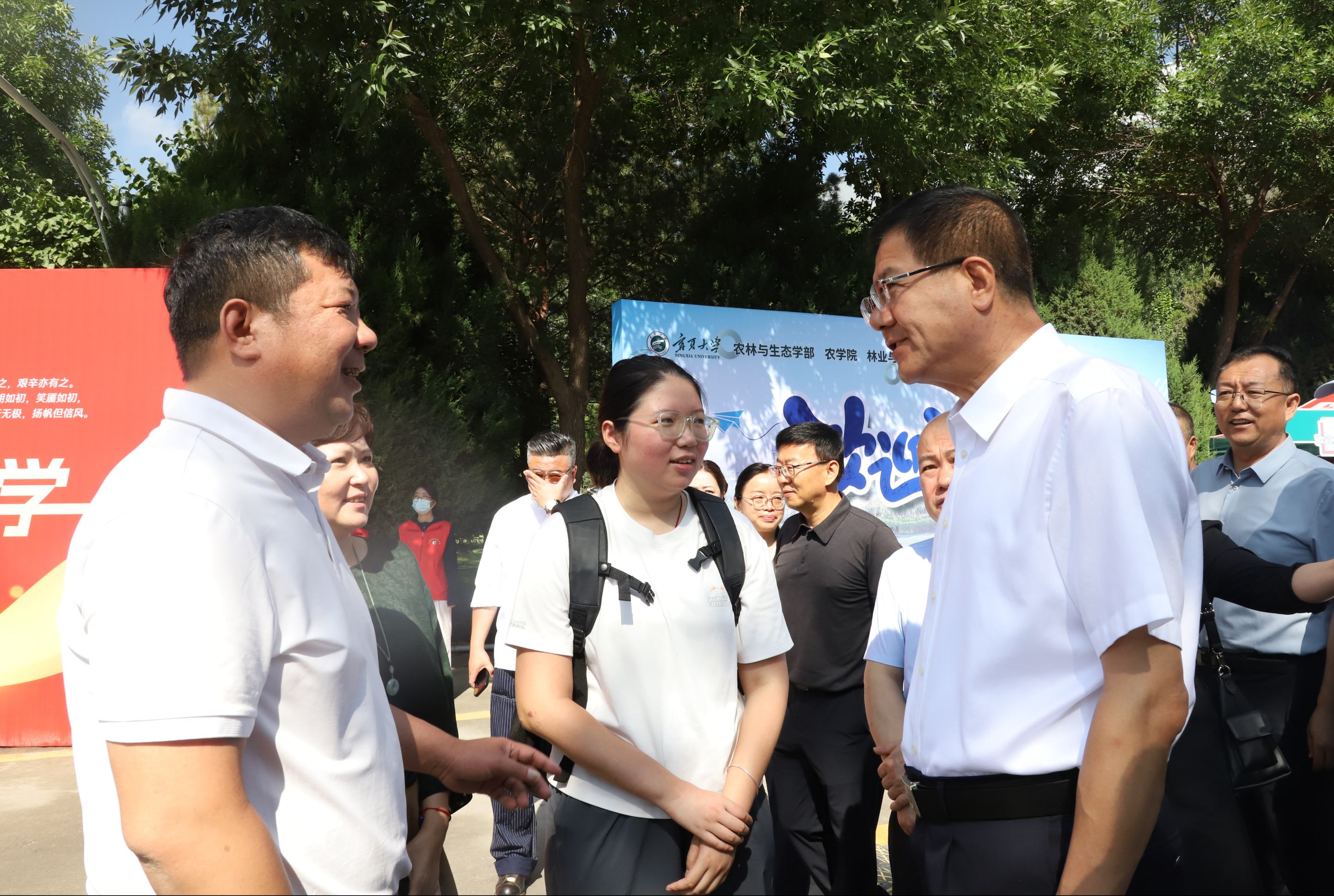 “老家是哪里的?”“学什么专业?”“报到顺利吗?”在各校区迎新现场,校领导与前来办理入学手续的新生及家长亲切交谈,关切询问新生入学感受,耐心倾听学生心声,并勉励学生要做好规划,珍惜大学时光,在澳门十大信誉网赌大全能够学有所获、学有所成、报效祖国、感恩父母。校领导逐一查看各书院、学院的特色接待点,详细了解新生报到流程、各专业招生录取及报到情况,听取相关负责人关于新生及家长接待、报到引导及服务工作的介绍。当看到团委学生会及各学院为新生精心准备的手绘校园地图、定制明信片、文创钥匙扣等“迎新礼包”时,校领导称赞这些细节既传递了学校的温暖,也让新生更快地感受到“沙枣树精神”“宁大归属感”,并对师生和志愿者们热情周到、细致贴心的迎新工作及辛勤付出表示感谢。在各迎新点,校领导应邀与新生及家长合影留念,用镜头定格这份初见的美好。