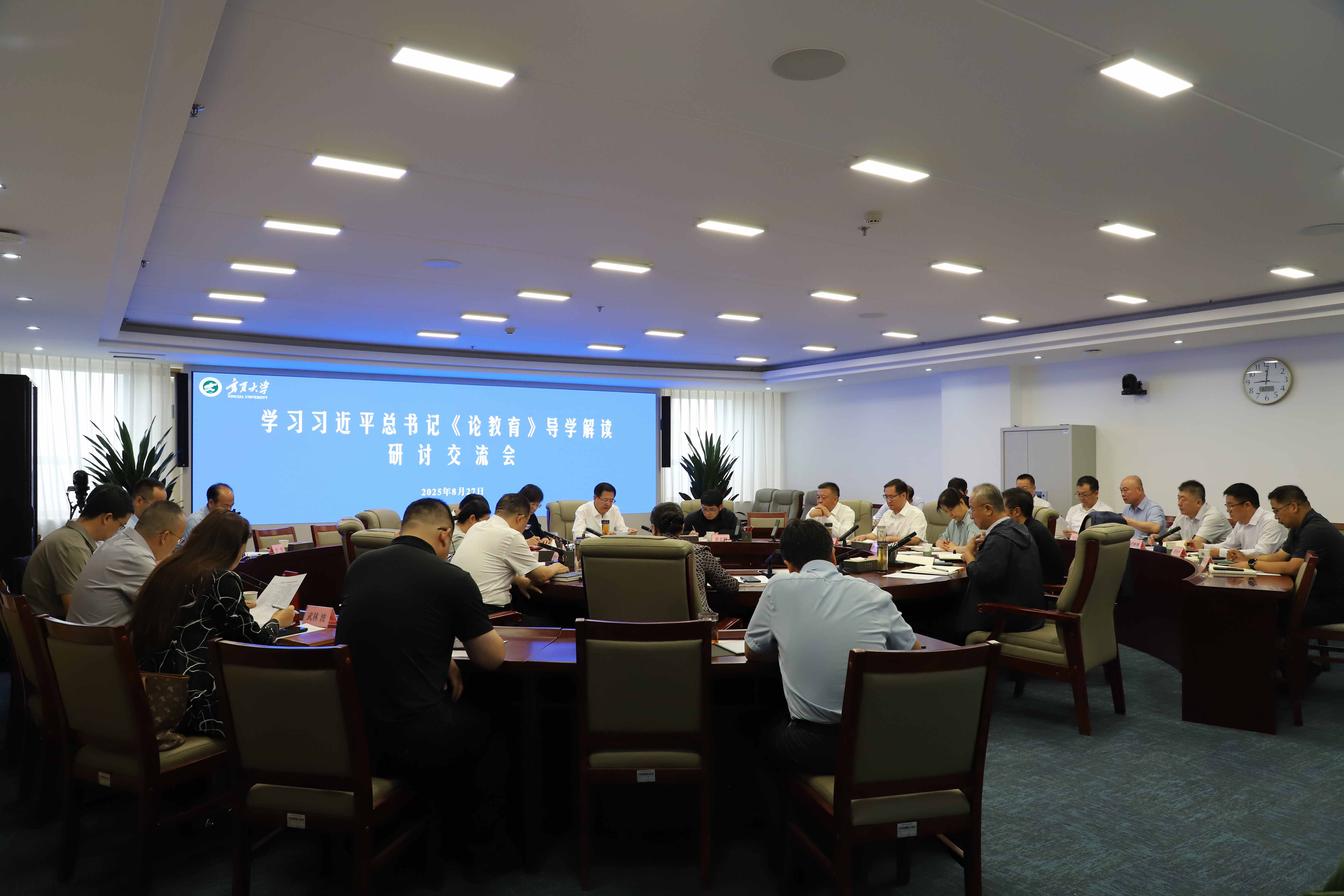 8月27日,信誉网赌召开学习习近平总书记《论教育》导学解读研讨交流会,全体校领导、党委常委、党委委员参加研讨,校党委书记王宏伟主持会议并领学了《在全国教育大会上的讲话》《大力弘扬教育家精神,为党育人为国育才》《办好中国特色世界一流大学》《思政课是落实立德树人根本任务的关键课程》等21篇重要内容。