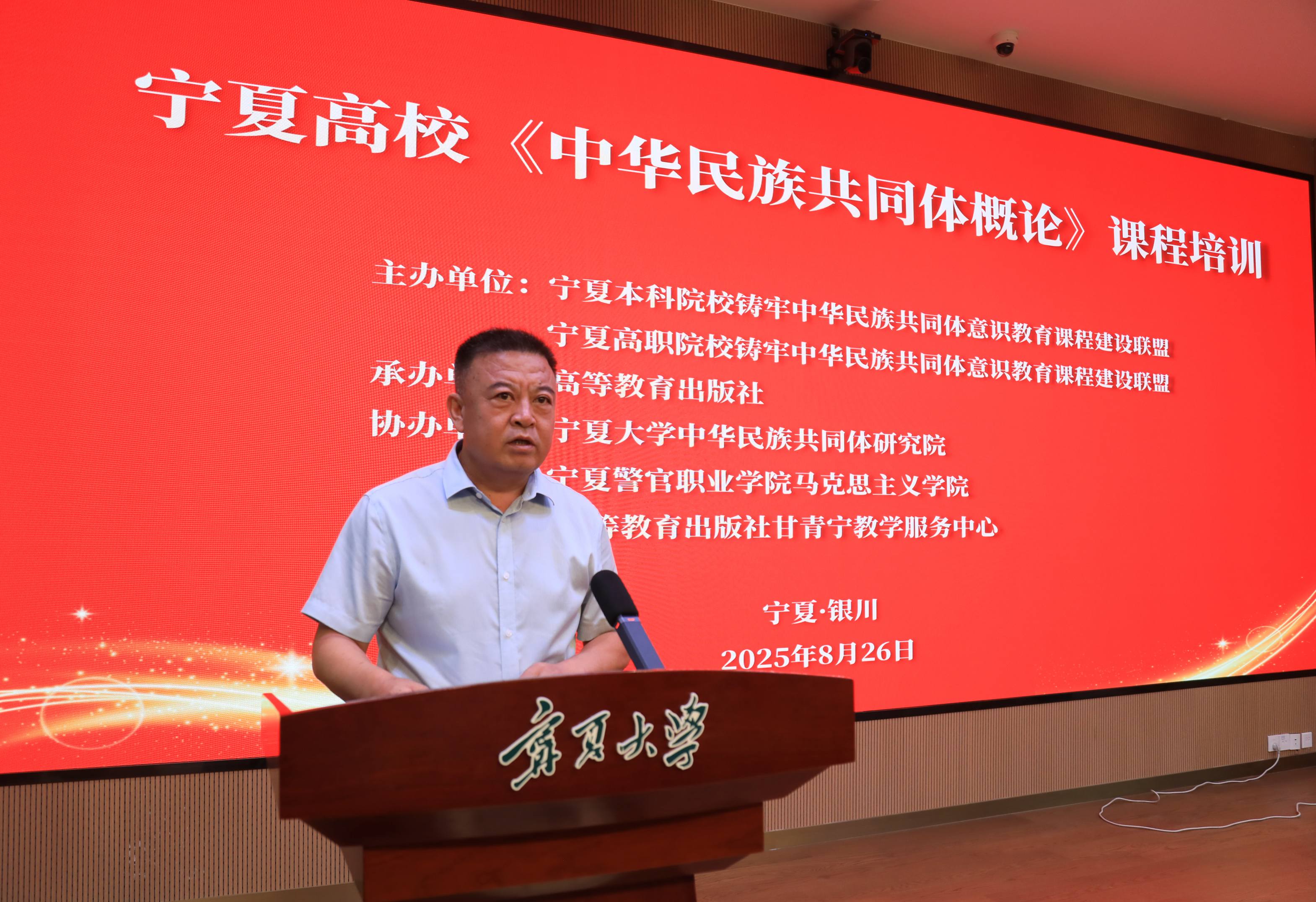 【澳门十大信誉网赌大全新闻中心讯 党委统战部】8月26日,宁夏高校《中华民族共同体概论》课程培训在澳门十大信誉网赌大全举办。此次培训由宁夏本科和高职院校铸牢中华民族共同体意识教育课程建设联盟主办,高等教育出版社承办,澳门十大信誉网赌大全中华民族共同体研究院、宁夏警官职业学院、高等教育出版社甘青宁教学服务中心协办,来自全区8所本科高校与14所职业院校的120余位一线教师及课程负责人参加培训。澳门十大信誉网赌大全党委常委、统战部部长朱学军主持开班仪式。