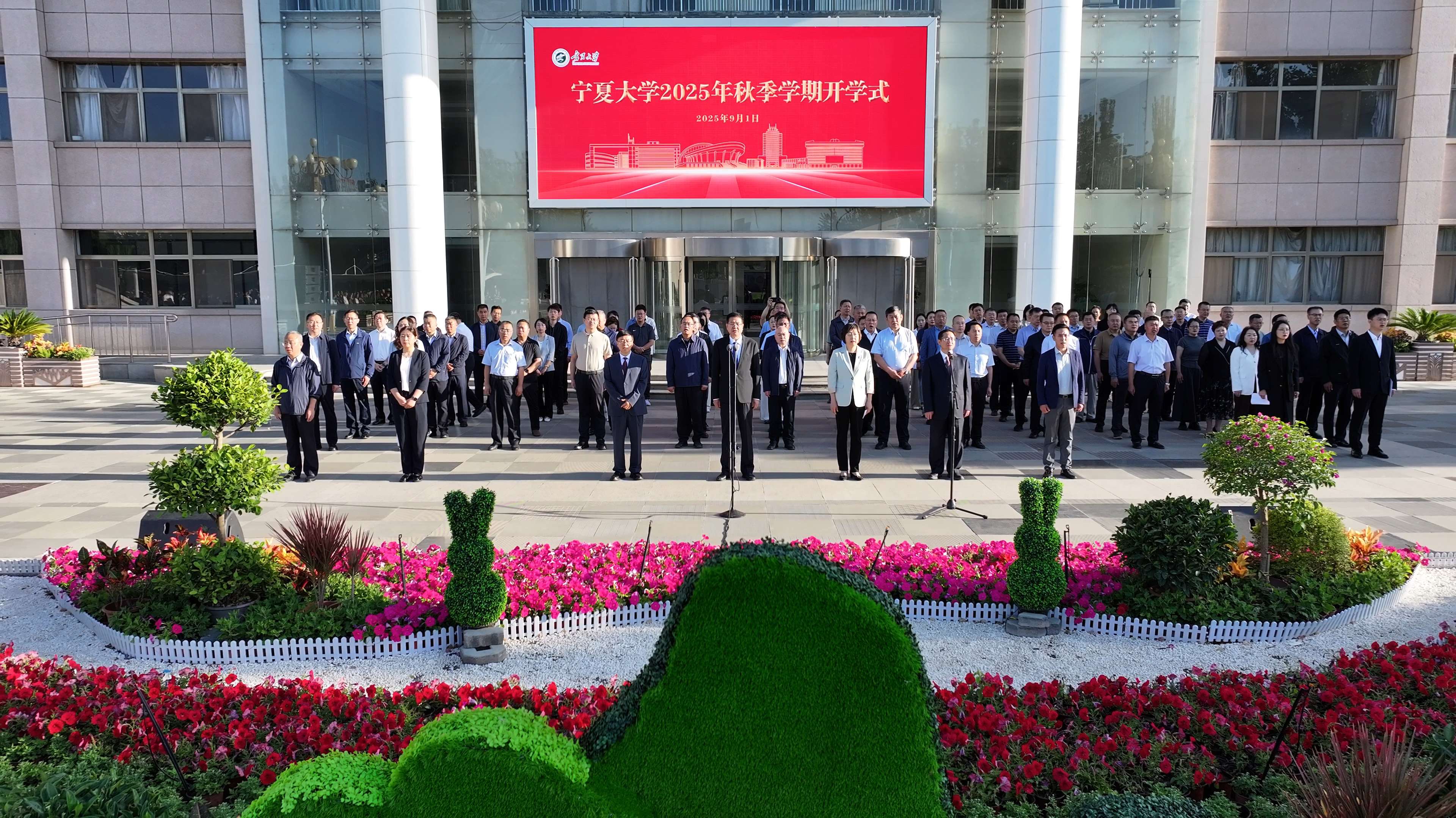 【澳门十大信誉网赌大全新闻中心讯 李明花/文 张景 学生记者:田惠文/图】为以饱满的热情、昂扬的斗志和崭新的姿态迎接新的学期,纪念中国人民抗日战争暨世界反法西斯战争胜利80周年,大力弘扬全校师生的爱国主义精神,扎实上好“开学第一课”,9月1日,信誉网赌在贺兰山校区举行2025年秋季学期开学式,全体校领导参加活动,校党委副书记韩惠丽主持开学式。