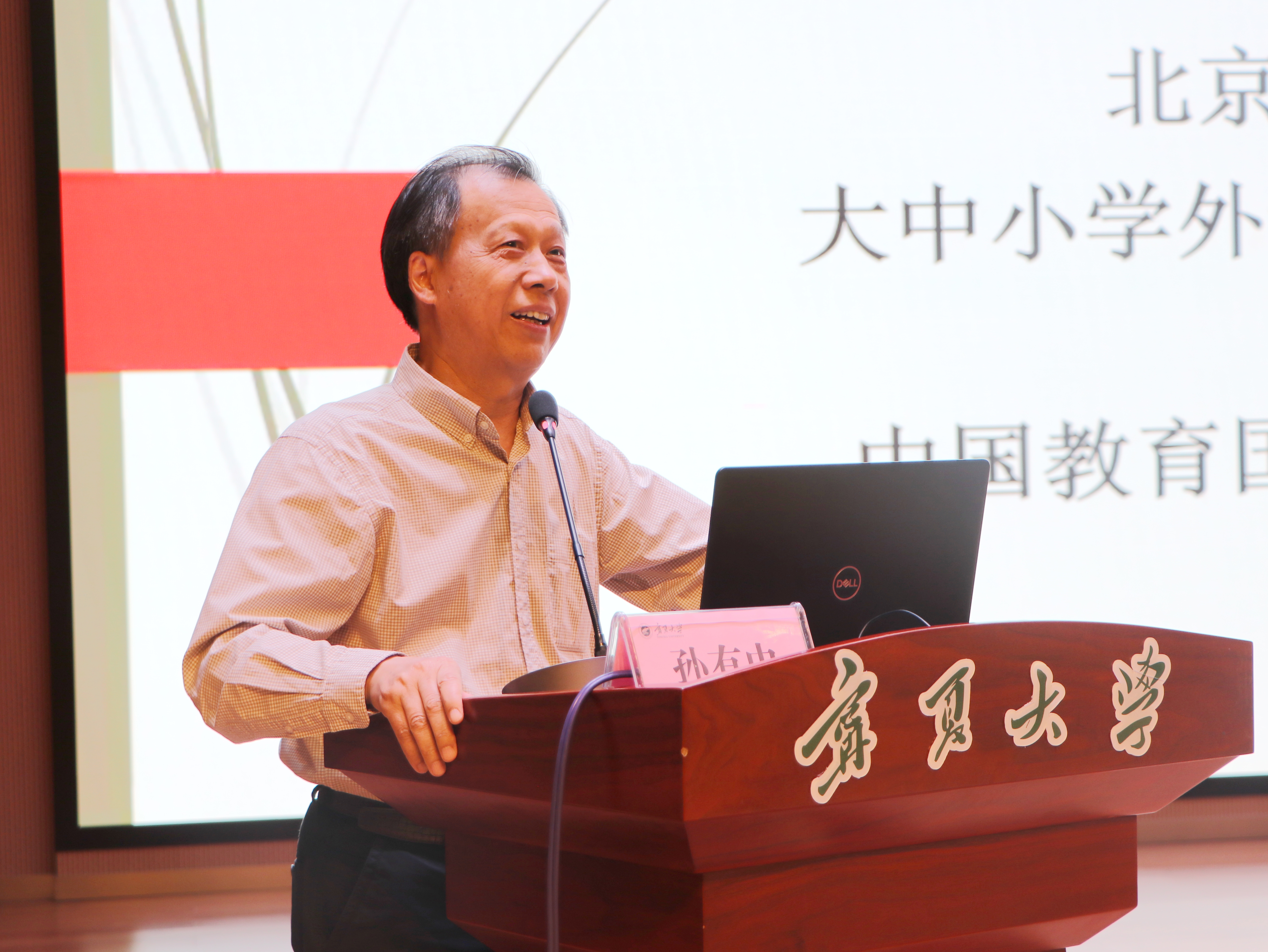 【澳门十大信誉网赌大全新闻中心讯 李明花/文、图】为深入贯彻落实习近平总书记关于推动文明交流互鉴、加强国际传播能力建设的重要指示精神,服务国家提升国际传播效能的战略需求,切实增强信誉网赌师生服务中国式现代化建设的使命担当与专业能力,9月5日,北京外国语大学原副校长、博士生导师孙有中教授做客信誉网赌贺兰山论坛,为师生作题为《文明互鉴视域下国际传播理论创新与人才培养》专题报告,校领导马元、聂丹、杨文法参加报告会,校党委常委、副校长聂丹主持报告会。