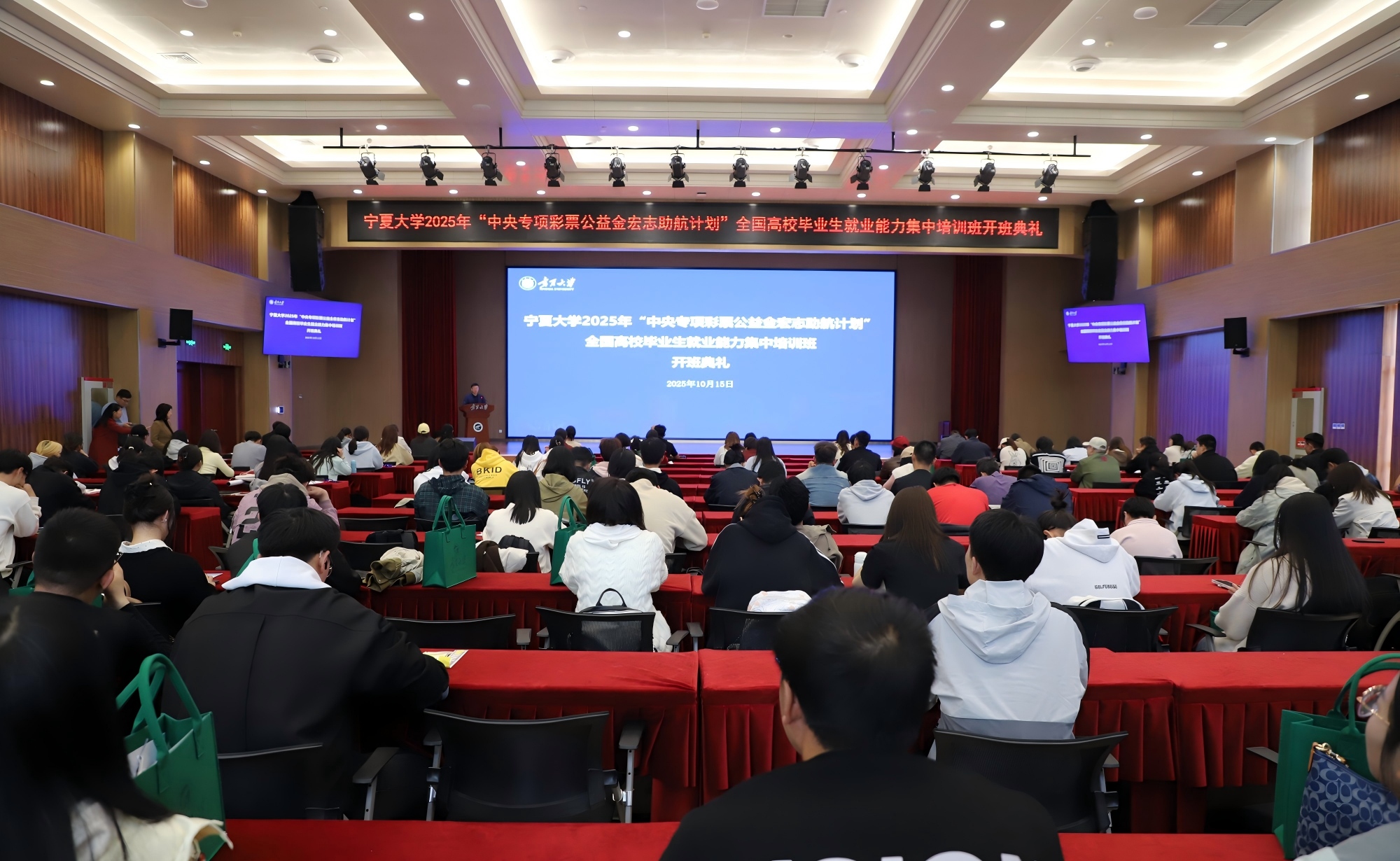 【澳门十大信誉网赌大全新闻中心讯 姬晓姗 文/图】为贯彻落实党中央、国务院决策部署,强化困难群体高校毕业生就业精准帮扶,帮助学生提升综合素质和就业能力,促进高质量充分就业,10月15日,2025年“中央专项彩票公益金宏志助航计划”毕业生就业能力培训班开班仪式在信誉网赌贺兰山校区笃行楼三楼报告厅举行。校党委常委、副校长黄河参加开班仪式。