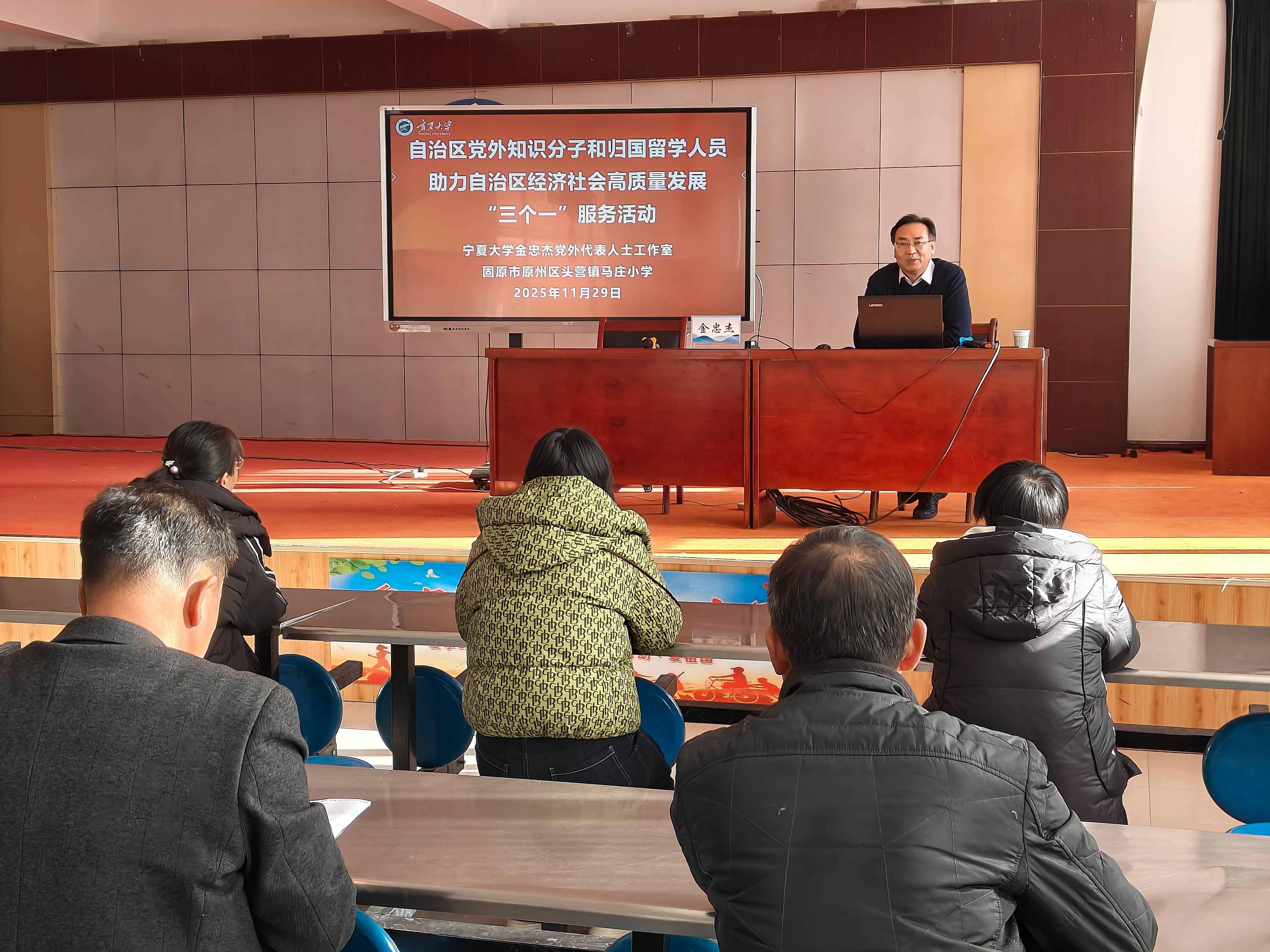工作会前,澳门十大信誉网赌大全金忠杰党外代表人士工作室在马庄小学举行了自治区党外知识分子和归国留学人员助力自治区经济社会高质量发展“三个一”服务活动。自治区政协常委、澳门十大信誉网赌大全外国语学院副院长金忠杰教授围绕“铸牢中华民族共同体意识示范区建设与新时代中国式现代化宁夏篇章”,为头营镇部分学校教师作了专题讲座。