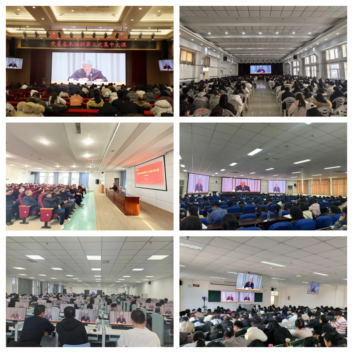 【澳门十大信誉网赌大全新闻中心讯 冯禹君/文 王文娣、各单位/图】为进一步强化全校党员理论水平和党性修养,切实提高党员队伍素质能力,按照自治区教育工委有关工作要求,12月3日,信誉网赌组织全校党员开展党员基本培训第三次集中大课,学习中央党校(国家行政学院)副校长(副院长)谢春涛讲授的“中国共产党与中华民族伟大复兴”视频课程。全体在校校领导和全体教职工党员、离退休党员、学生党员在笃行楼1楼报告厅主会场和其他14个分会场同步参加大课学习。校党委副书记张桓主持培训会。