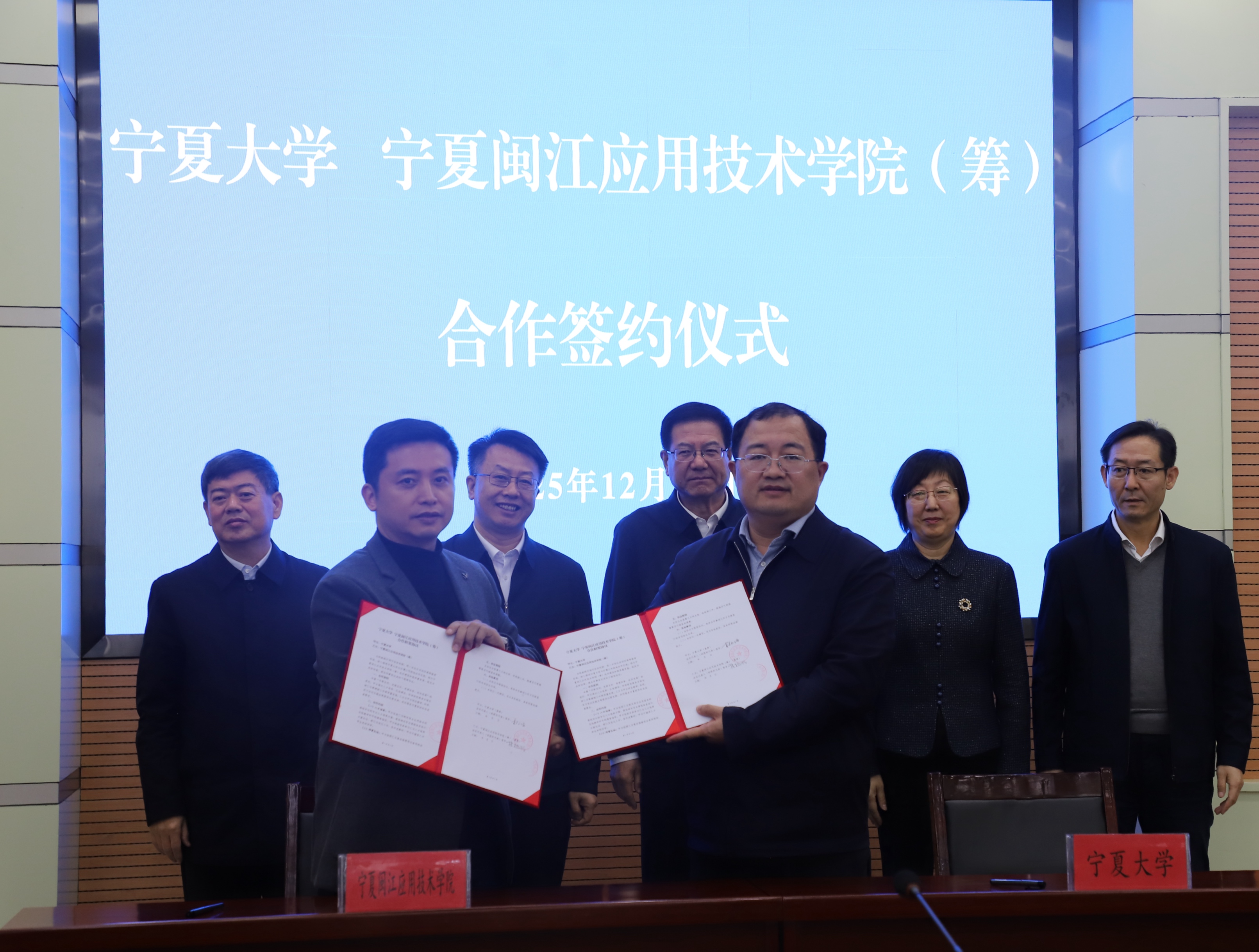 【澳门十大信誉网赌大全新闻中心讯 王文娣/文、图】为进一步深化校地、校校合作协同创新,12月11日,校党委书记王宏伟,校党委副书记韩惠丽,校党委常委、副校长杨文法,校党委常委、副校长车进一行赴石嘴山市开展调研,并与宁夏闽江应用技术学院举行合作签约仪式。