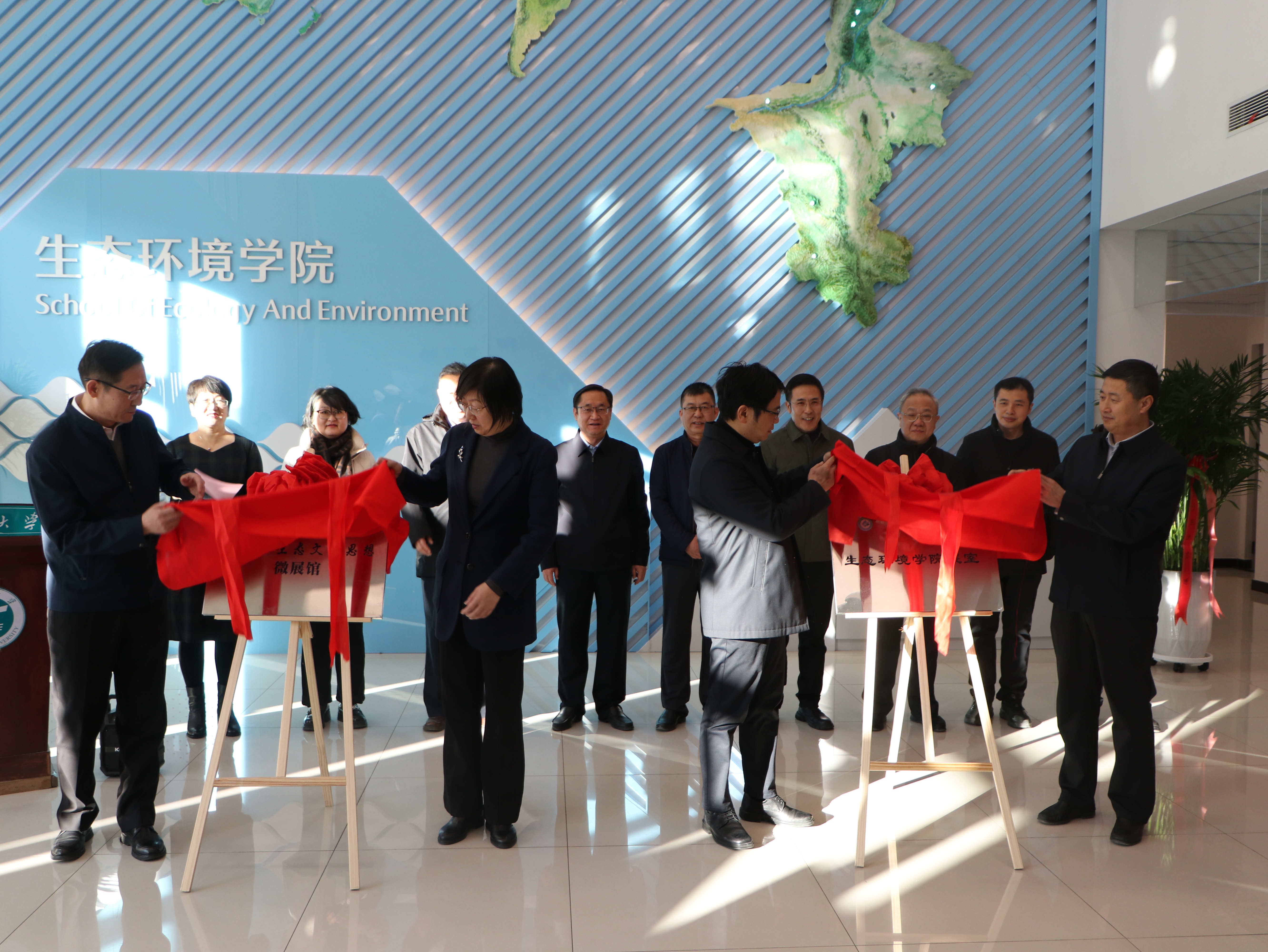 与会领导为“习近平生态文明思想微展馆”和“生态环境学院展室”揭牌。揭牌仪式后,彭志科一行参观了习近平生态文明思想微展馆和生态环境学院展室,并对学院今后发展提出具体要求。