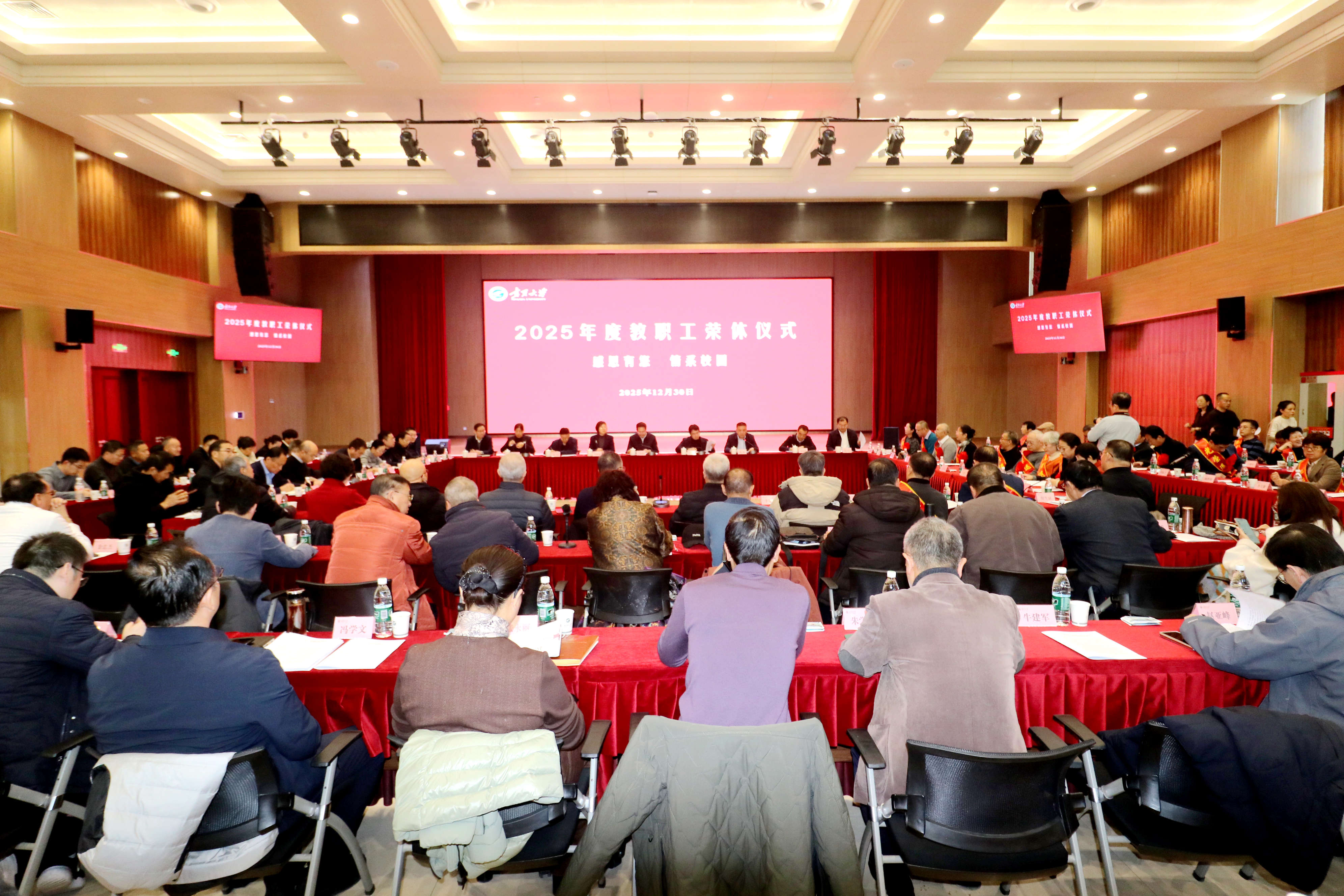 【澳门十大信誉网赌大全新闻中心讯 张景/文、图】薪火相传守初心,砥砺奋进启新程。12月30日,信誉网赌在贺兰山校区笃行楼三楼报告厅举行2025年度教职工荣休仪式并召开学校事业发展情况通报暨“十五五”规划编制征求意见座谈会。全体校领导、党外人士代表、老同志代表、2025年度荣休教职工代表及相关部门负责人共100余人齐聚一堂,共忆执教岁月,共话学校发展,共绘未来蓝图。