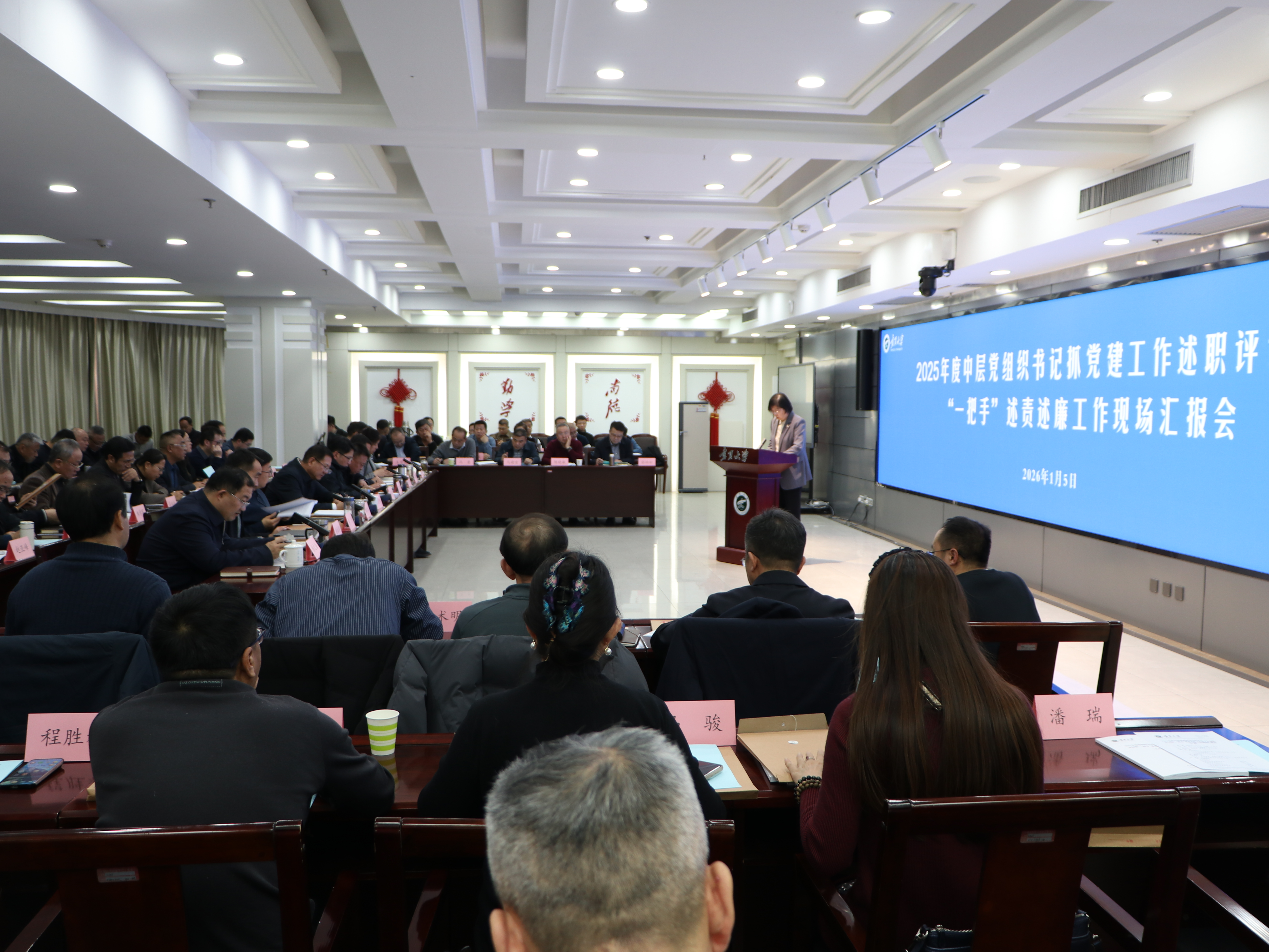【澳门十大信誉网赌大全新闻中心讯 李明花/文、图】为全面盘点2025年度党建工作成效,精准查摆问题不足,明确下一步努力方向,1月5日,信誉网赌召开2025年度中层党组织书记抓党建工作述职评议暨“一把手”述责述廉工作现场汇报会,校党委副书记韩惠丽主持会议。