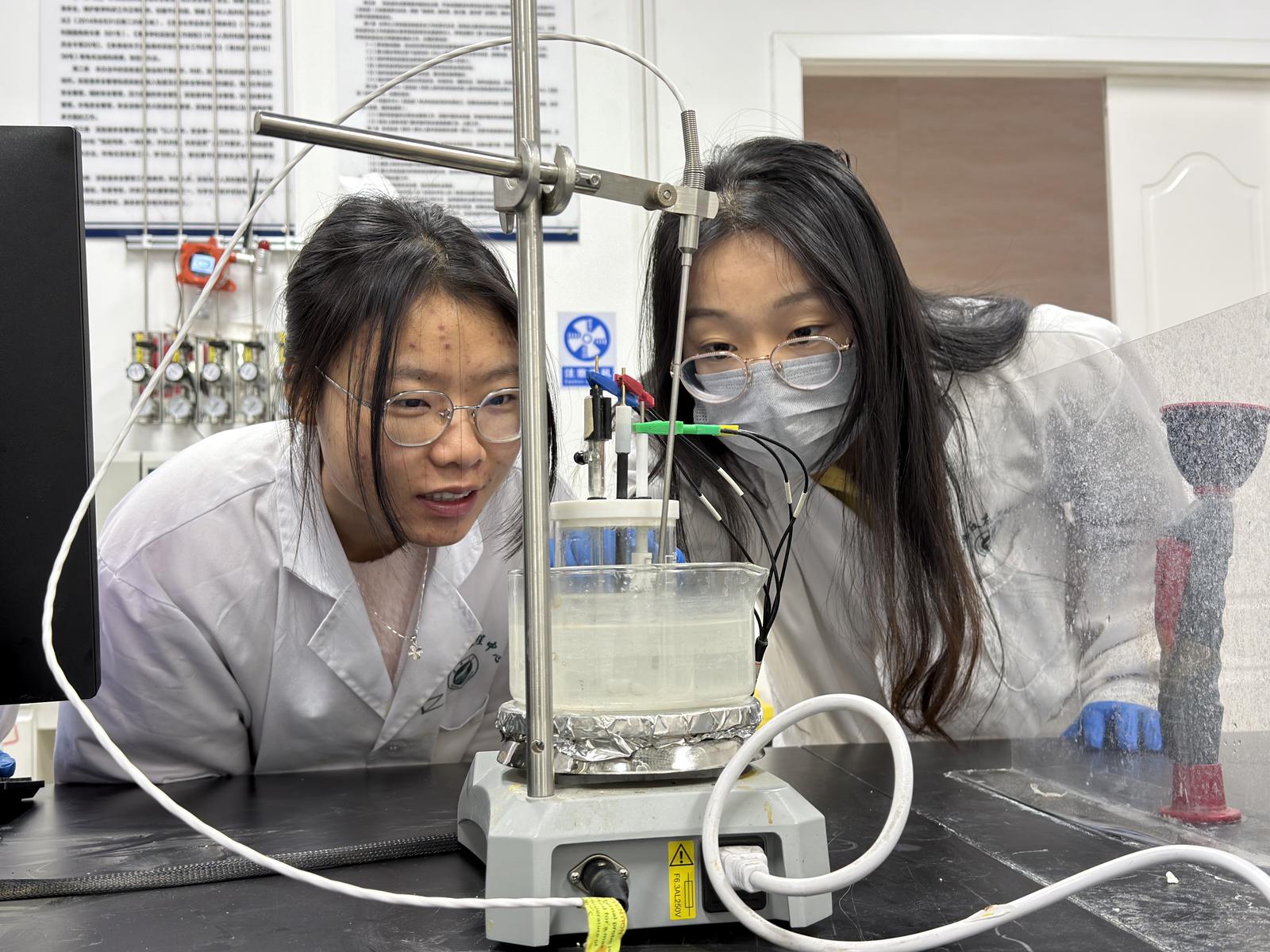 澳门十大信誉网赌大全化工学院学生忙着调整设备参数。