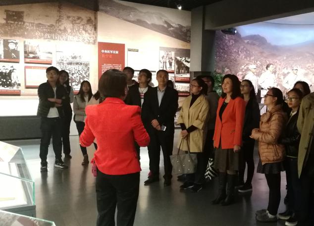 党建交流结束后,在宁夏博物馆支部的安排下,全体师生参观了宁夏博物馆“红旗漫卷——宁夏革命文物专题展”。在博物馆讲解员专业的讲解下,师生们或驻足于一件件红军使用过的珍贵文物前,或流连于一幅幅革命老照片前,或对红军当年在宁夏艰苦卓绝的革命斗争史进行交流咨询。