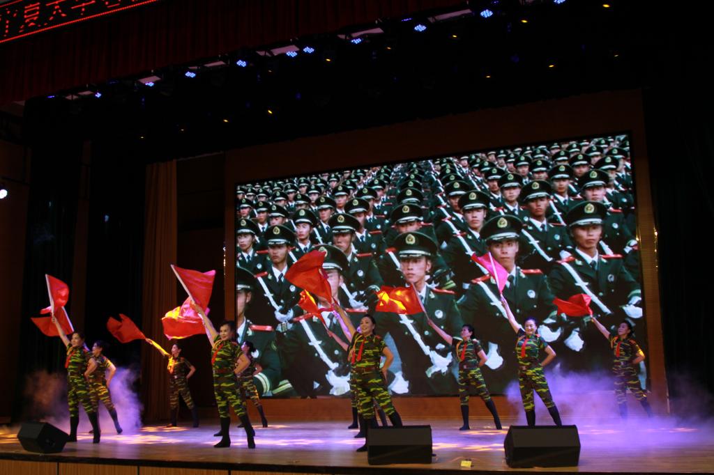 随着悦耳动听的乐器合奏,演出正式拉开了帷幕,一场精彩纷呈的视听盛宴随即上演。合唱《大中国》《担军粮》热情洋溢,将浓浓的爱国热情传遍全场;《白字经》独居特色,以宁夏方言幽默诙谐,引得台下掌声不断,喝彩连连。《秦腔曲牌》板胡演奏行云流水,韵律动人……深情的歌曲,优美的舞蹈,精彩纷呈的节目接连不断,现场气氛火热。