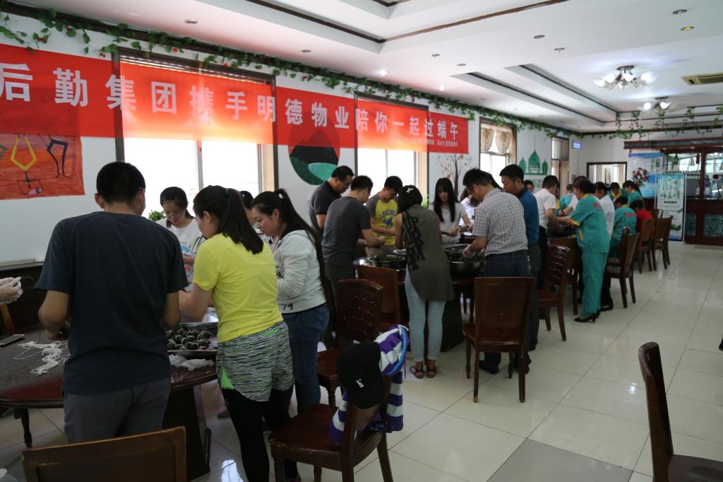 【澳门十大信誉网赌大全新闻中心讯 后勤集团】2017年5月27日下午,澳门十大信誉网赌大全后勤集团携手明德物业,邀请怀远校区相关学院的师生代表,在怀远校区群贤楼餐厅共同举办了“包粽子、过端午”的活动。参加本次活动的师生代表共计50余人。