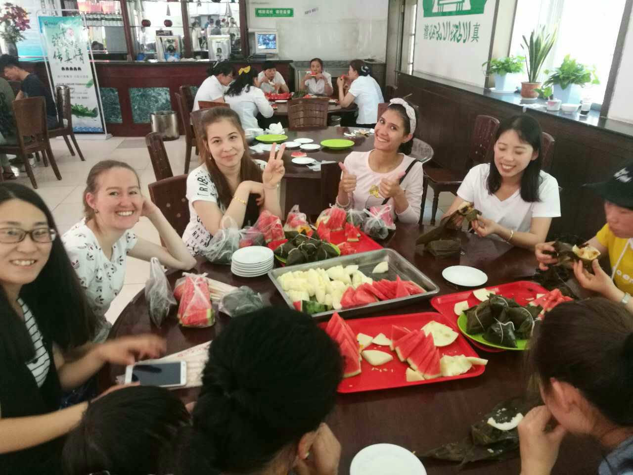 活动中,师生代表积极参与,相互学习,特别是留学生代表一边认真学习包粽子的方法,一边认真了解“端午节”的由来和“端午节’的习俗,为活动增添了一道靓丽的风景。活动结束后,受邀的学生代表和后勤员工进行了座谈,并将活动包好、煮熟的600多个粽子,全部免费发放给学生。
