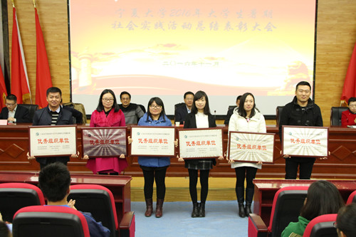 会上播放了2016年大学生暑期社会实践专题纪录片。校团委书记王彦庚作2016年大学生暑期社会实践工作总结。校团委副书记闫蓉宣读了《关于表彰澳门十大信誉网赌大全2016年大学生暑期社会实践活动先进集体和个人的决定》。与会领导为荣获暑期社会实践活动优秀组织单位、优秀项目团队代表、优秀指导教师代表、优秀个人代表颁奖。