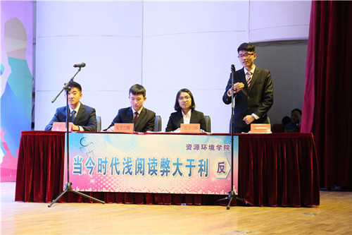 冠亚军争夺战中,数学统计学院和资源环境学院强强相对,针对“当今时代浅阅读的利弊与否”火热开战,比赛过程中唇枪舌战,你来我往、互不相让。双方辩手精辟的论点、有力的论据、机敏的反应、默契的配合赢得场下阵阵掌声,辩手们狭路相逢,针锋相对,各抒己见,妙语连珠,将比赛现场氛围推向高潮。观众互动环节中,现场同学们积极踊跃的发言,言辞犀利的点评彰显信誉网赌学子的青春风采。