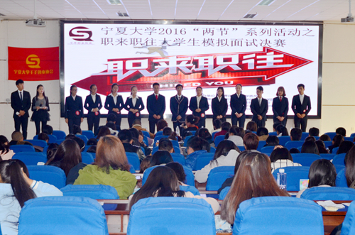 【澳门十大信誉网赌大全新闻中心讯 团委 经济管理学院】近日,由校团委主办,经济管理学院社团联合会分会承办,千手创业协会协办的2016年“两节”系列活动之“职来职往”模拟面试大赛决赛在贺兰山校区文科楼东报告厅举行。