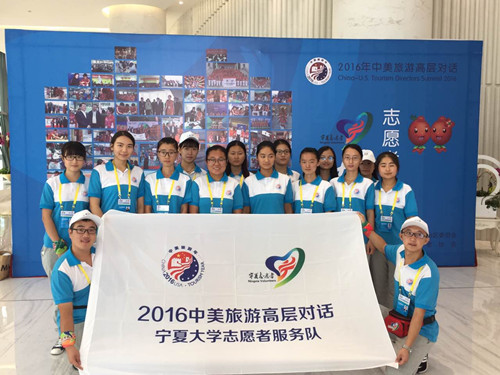 自今年四月以来,校团委积极配合自治区团委开展中美旅游高峰领导会议志愿者招募、培训等工作。此次择优录取的60名优秀志愿者中英语翻译岗位40人,其他岗位服务人员20名,主要服务于自治区旅游局、自治区外事办公室、自治区体育局等多家单位,重点为2016中美旅游高层对话启动仪式、宁夏国际友好城市论坛、中美葡萄酒文化论坛系列活动、人文交流系列活动等活动提供英语翻译、宣传服务、礼仪、秩序维持、会务助理、交通引导、会务接待等志愿服务工作。
