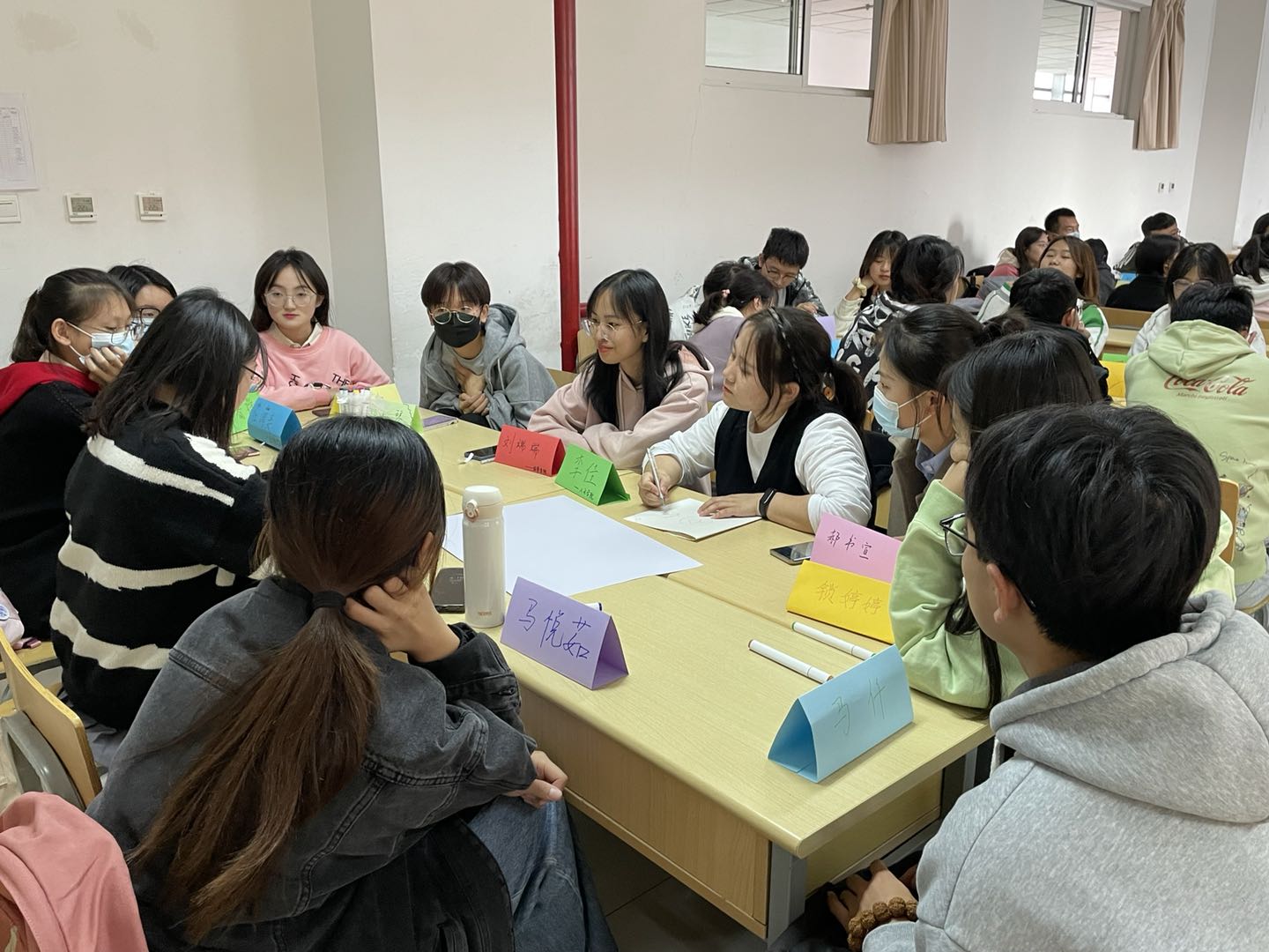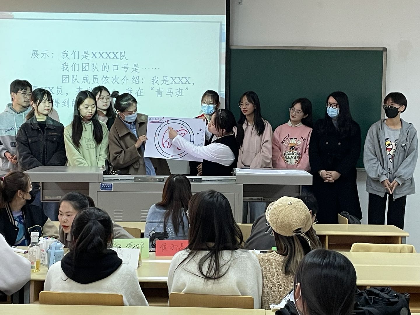 为加深“青马班”学员之间相互认识和了解,在“青马说”项目启动及课题选题开始前,各小组成员通过共同设计团队名称、口号、队歌,选出各小组活动委员、组织委员,潜移默化地增进了同学们之间的联系,活跃了气氛,提升了团体凝聚力。