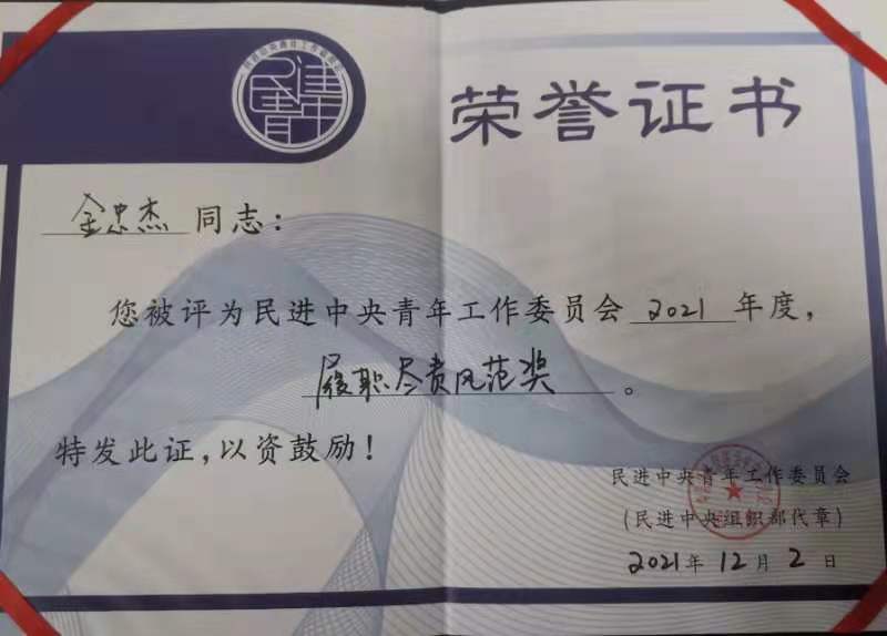 【澳门十大信誉网赌大全新闻中心讯 党委统战部】12月7日,民进中央青年工作委员会全体会议在京召开。民进中央常务副主席刘新成出席开幕式并讲话。民进中央青年工作委员会杨金龙主任作了民进中央青年工作委员会2021年工作报告,宣读了《民进中央青年工作委员会关于表彰2021年度先进个人的决定》。民进中央青年工作委员会副主任、民进澳门十大信誉网赌大全委员会副主委金忠杰教授荣获“履职尽责风范奖”。