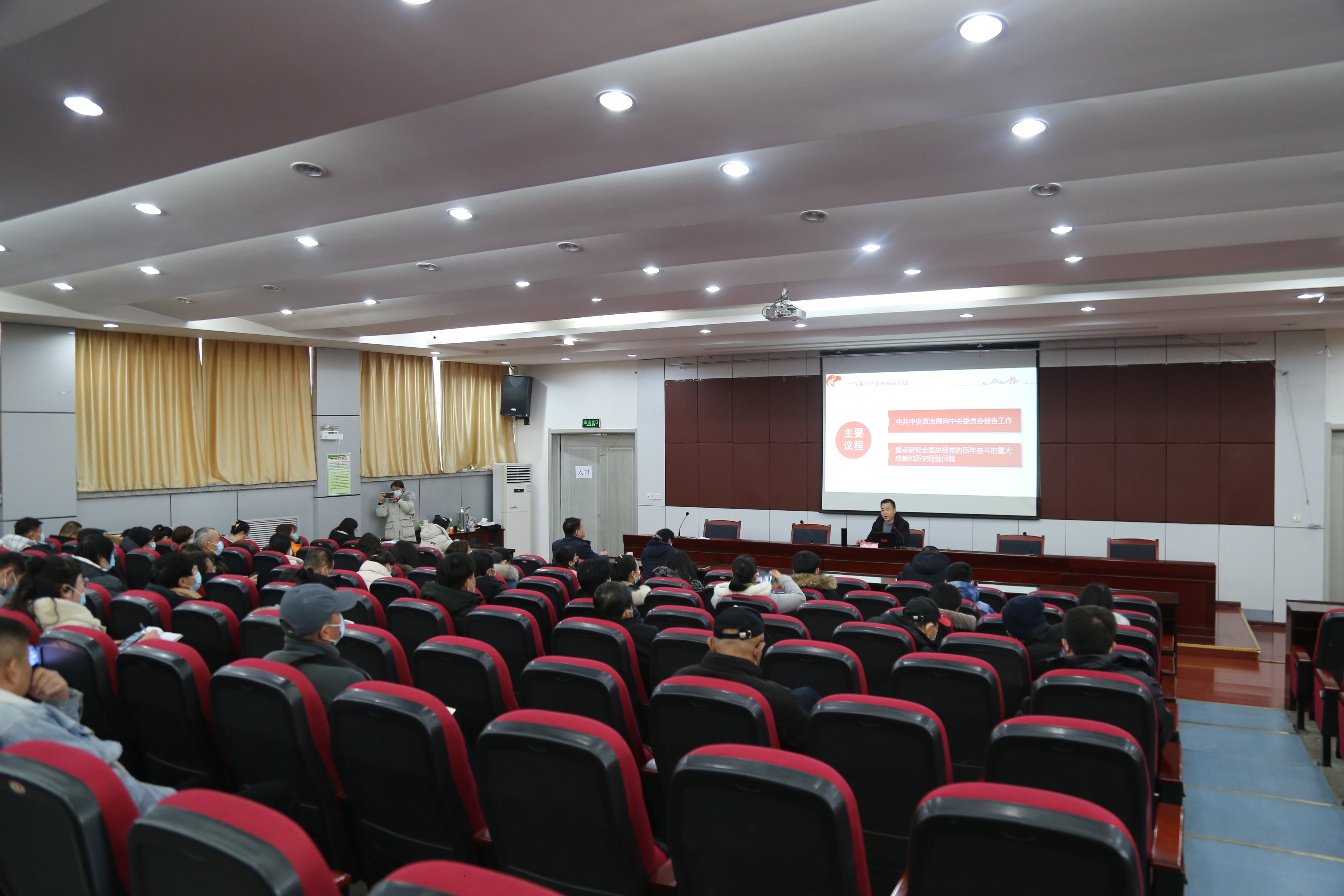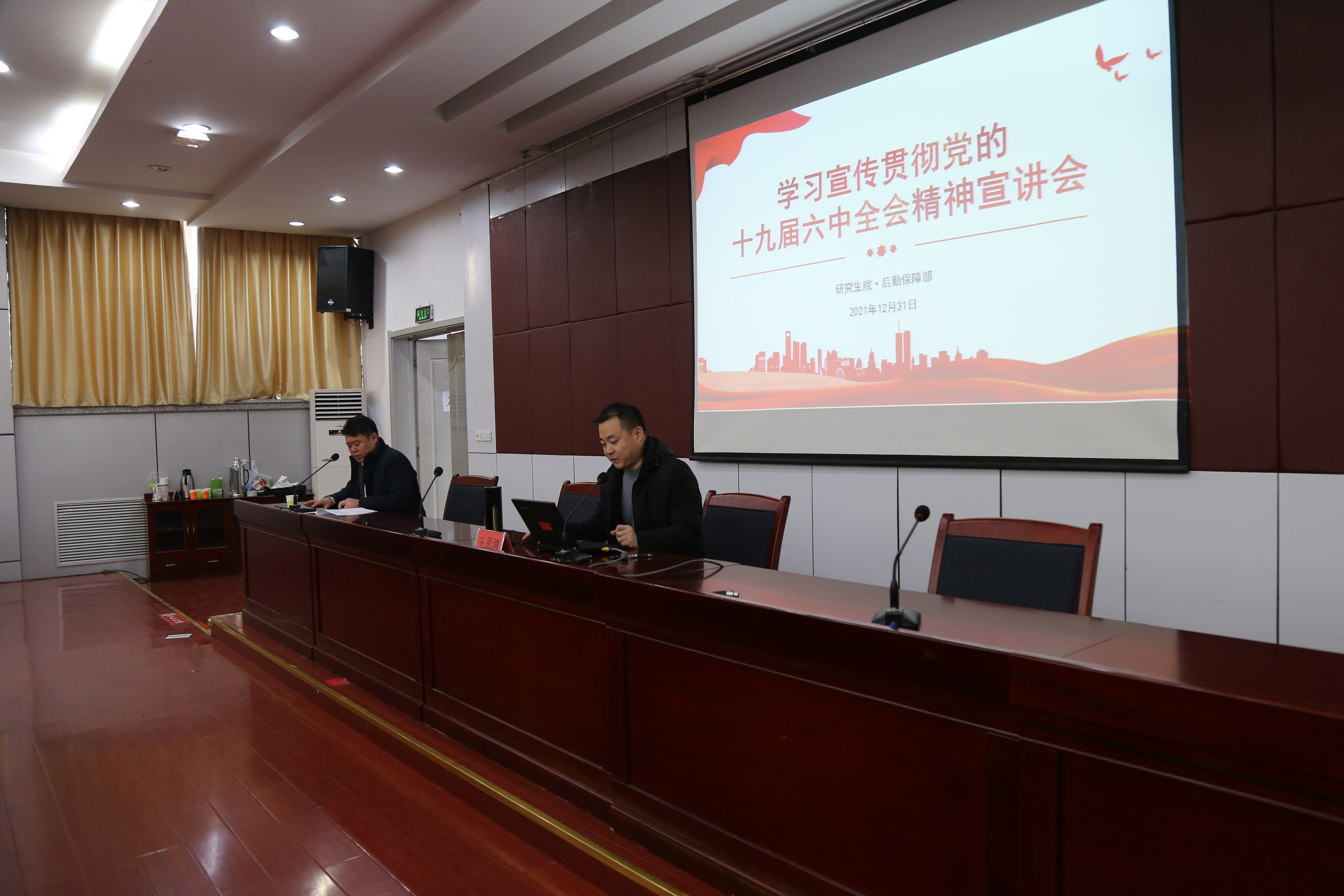 【澳门十大信誉网赌大全新闻中心讯 后勤保障部】为深入学习贯彻党的十九届六中全会精神,全面准确把握六中全会精神的核心要义和主旨精髓,12月31日,研究生院联合后勤保障部在怀远校区研究生院报告厅召开了学习贯彻党的十九届六中全会精神专题辅导报告会,邀请马克思主义学院王思鸿副教授作专题辅导报告。研究生院全体职工及后勤保障部副科级以上干部、全体党员到场聆听。报告会由研究生院院长曹兵主持。