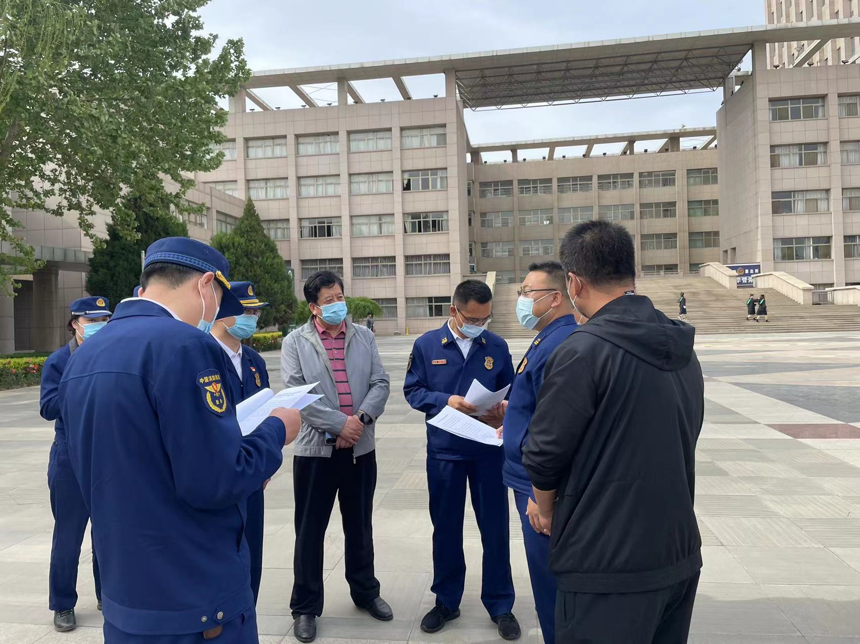 【澳门十大信誉网赌大全新闻中心讯 保卫处】5月10日,宁夏消防救援总队防火监督处处长王成武、宣传处处长赵志军,银川市消防救援支队防火监督处处长贠璞,西夏区消防救援大队安伟一行到信誉网赌检查指导消防安全标准化管理示范单位创建工作,保卫处处长张守荣、副处长丁大勇陪同检查。
