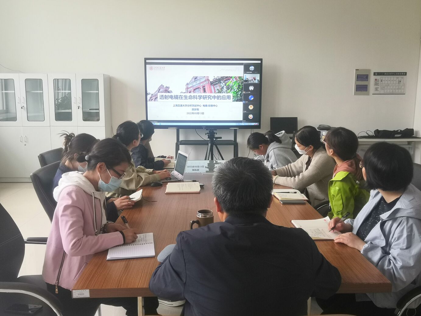 测试分析中心全体技术人员,生命科学学院、农学院等单位的部分师生参加线上会议,并同上海交通大学分析测试中心电镜-影像中心的老师就生物检测技术进行了互动交流。