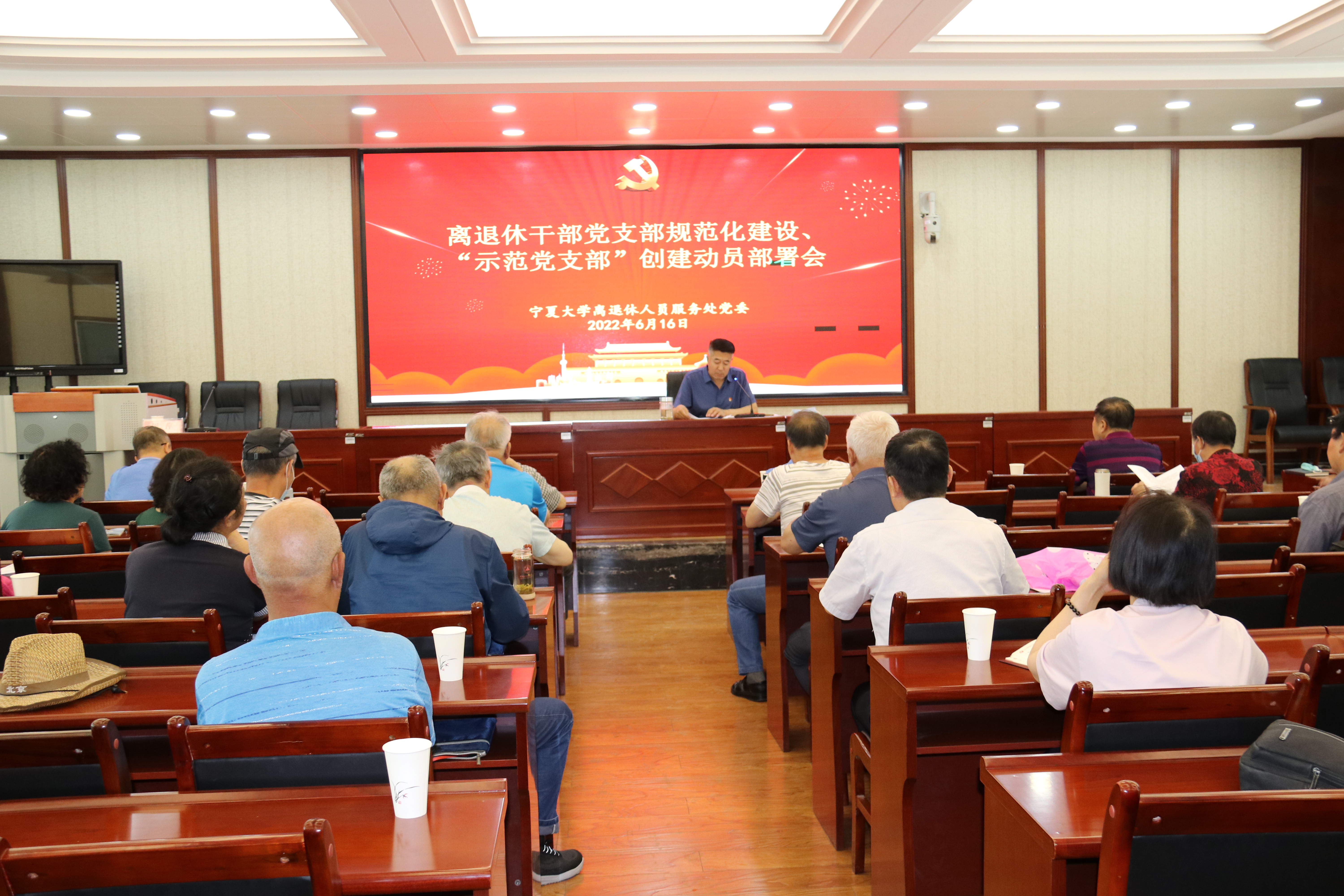 【澳门十大信誉网赌大全新闻中心讯 离退休人员服务处】为进一步规范新时代离退休干部党支部建设工作,发挥先进典型示范作用,着力实施“党建聚力”行动,推动离退休干部党建工作创品牌提质量,6月16日,离退休人员服务处党委在怀远校区召开离退休干部党支部规范化建设、“示范党支部”创建动员部署会,处党委书记、处长李思源主持会议。